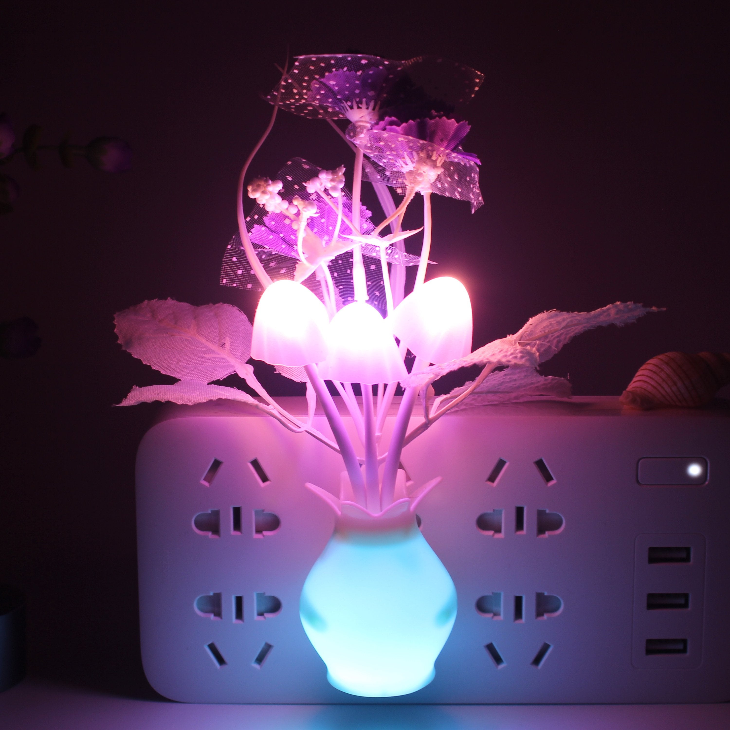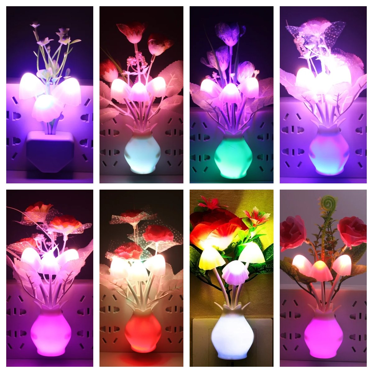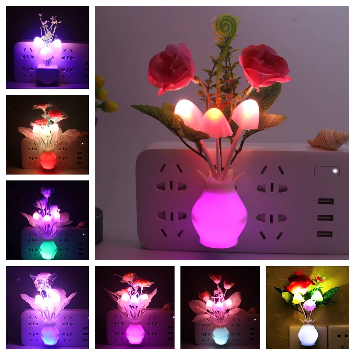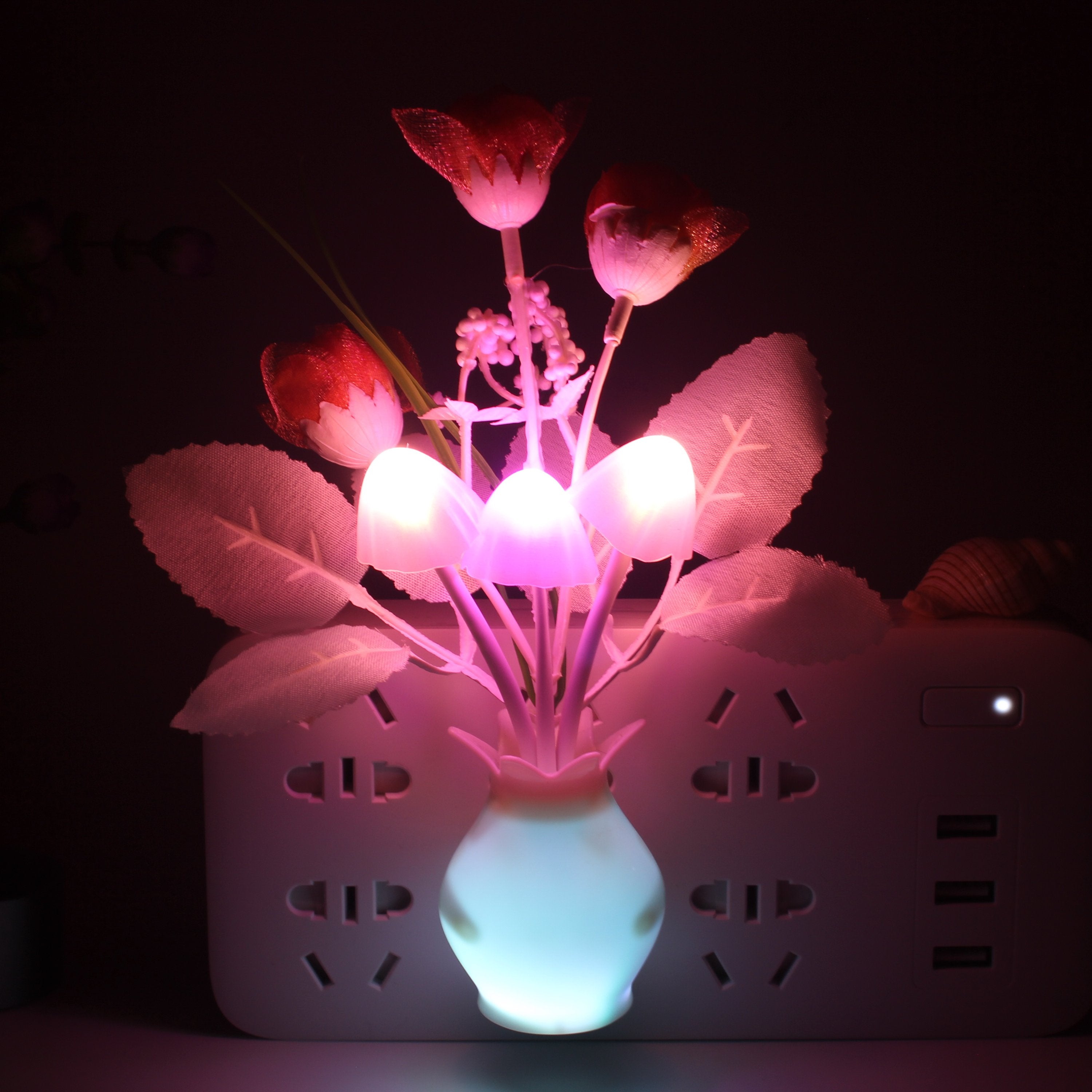 the mushroom plant led night lamp is built in a smart sensor for your convenient use; The decorative night lights will automatically turn on in the and turn off during the day. 7-color changes: these cute mushroom-shaped night lights will change in 7 colors automatically when the lights on.