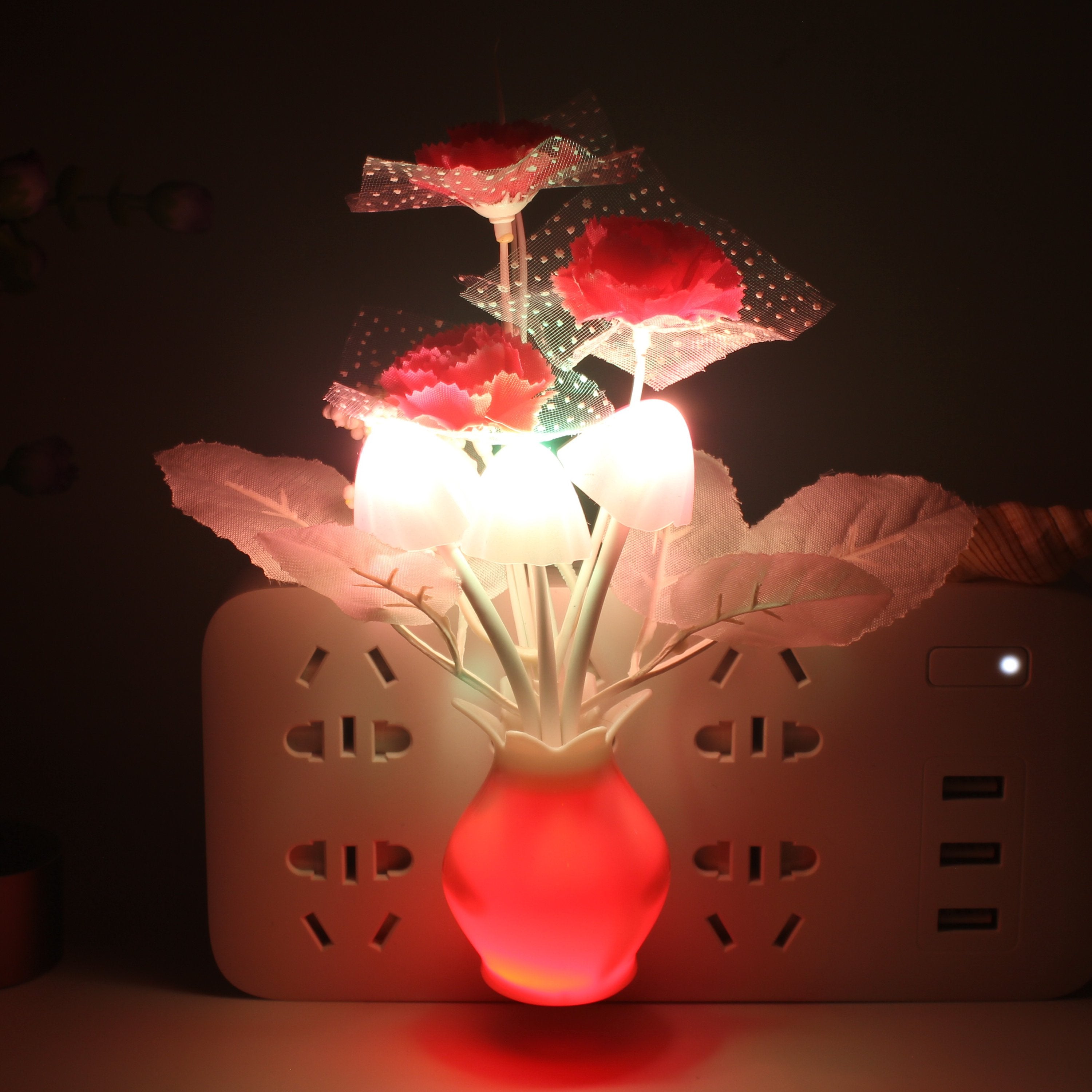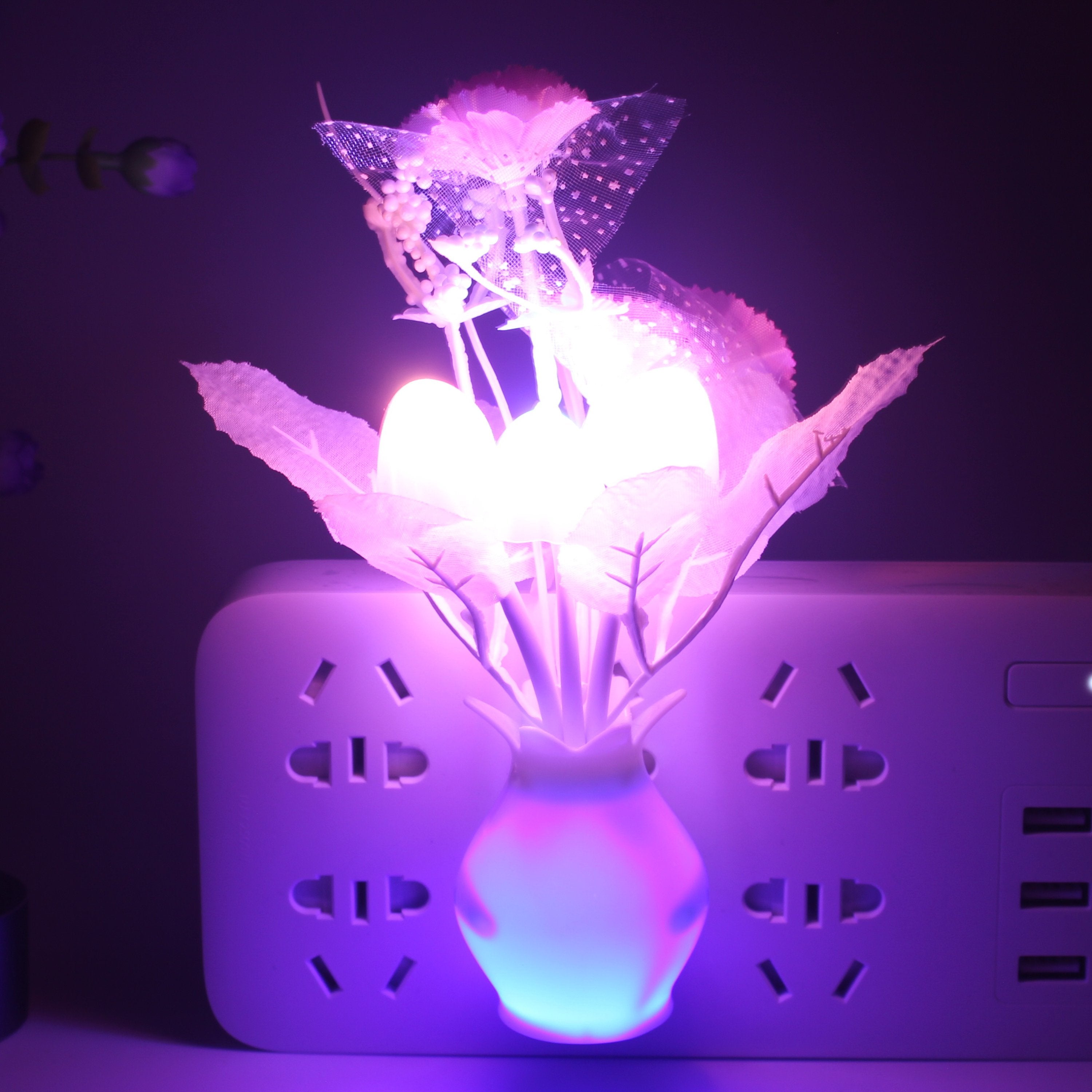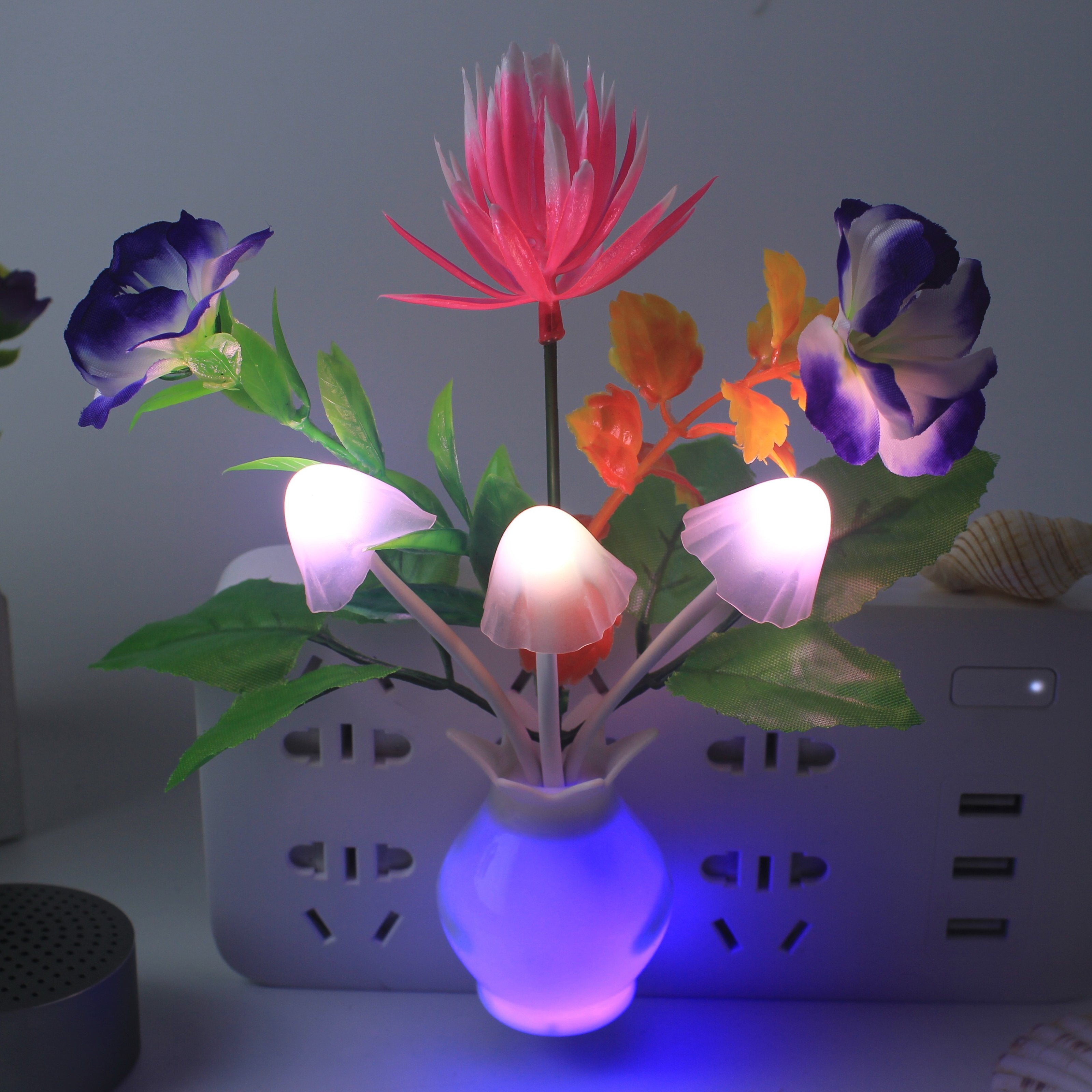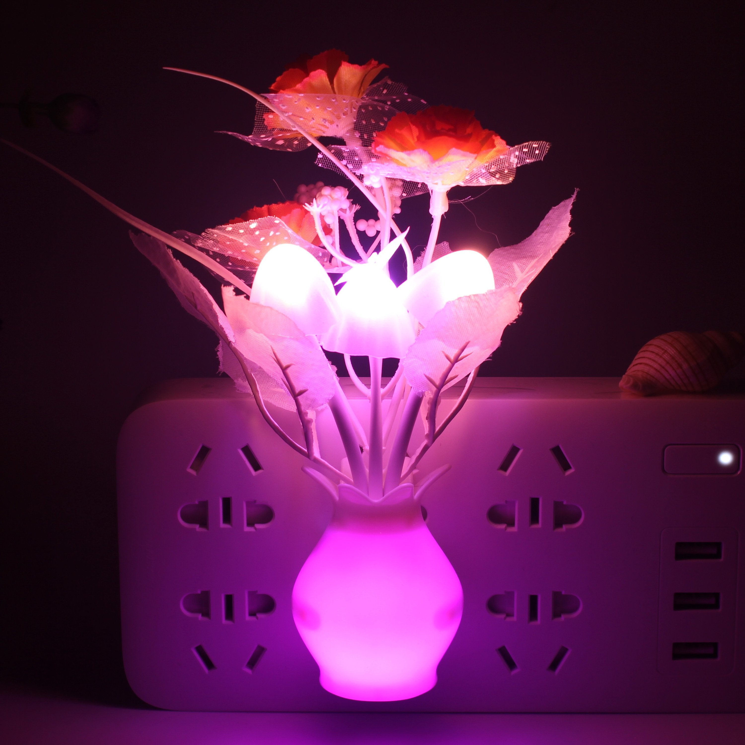 the mushroom plant led night lamp is built in a smart sensor for your convenient use; The decorative night lights will automatically turn on in the and turn off during the day. 7-color changes: these cute mushroom-shaped night lights will change in 7 colors automatically when the lights on.
