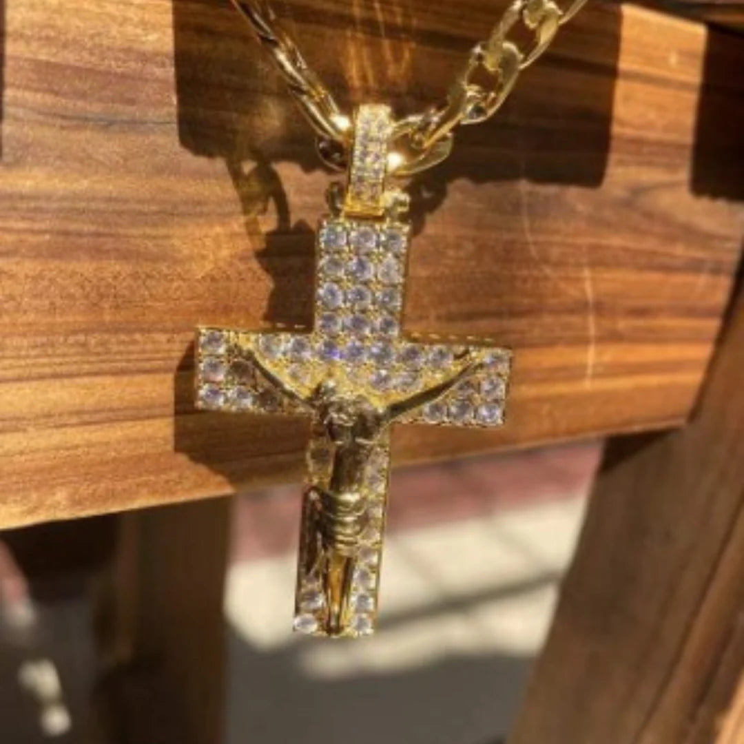 Our Crystal-Studded Crucifix Necklace combines spiritual significance with stunning craftsmanship, allowing your faith to shine as brightly as your personality.