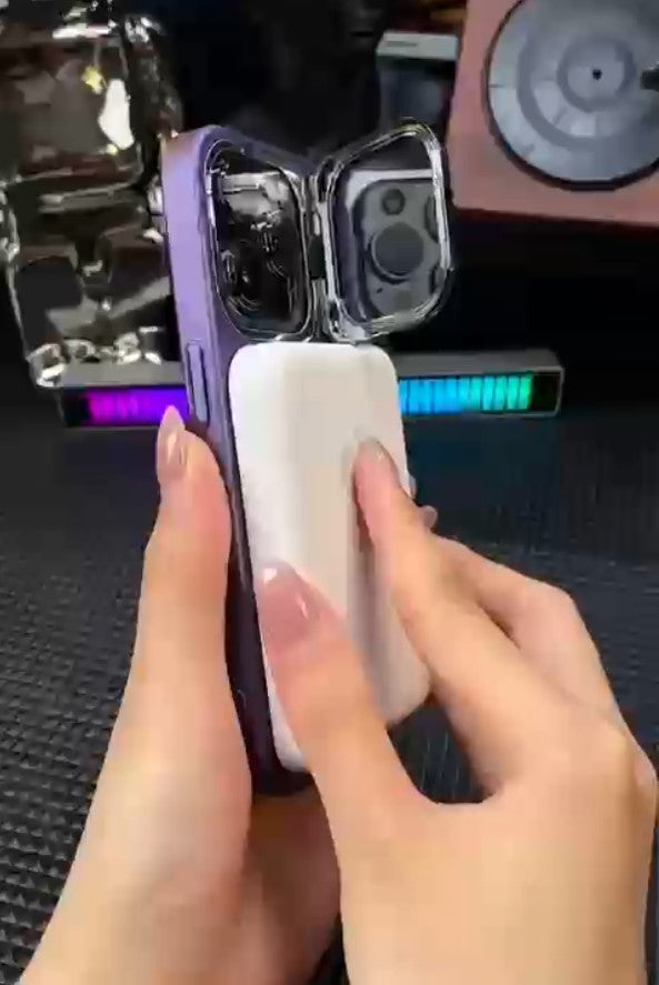 Introducing a 2in1 Folding Bracket Stand + Magnetic Poly-carbonate Magsafe compatible Case for your iphone comes with adorable looks, the case provides complete protection for the iphone from external harm and also Crafted fully covered Glass on Camera Lens.