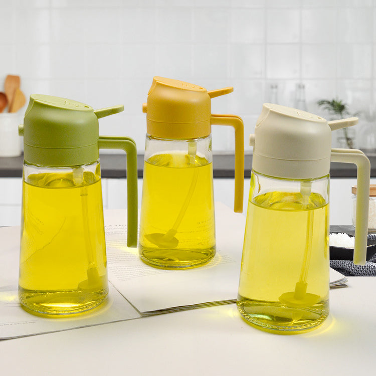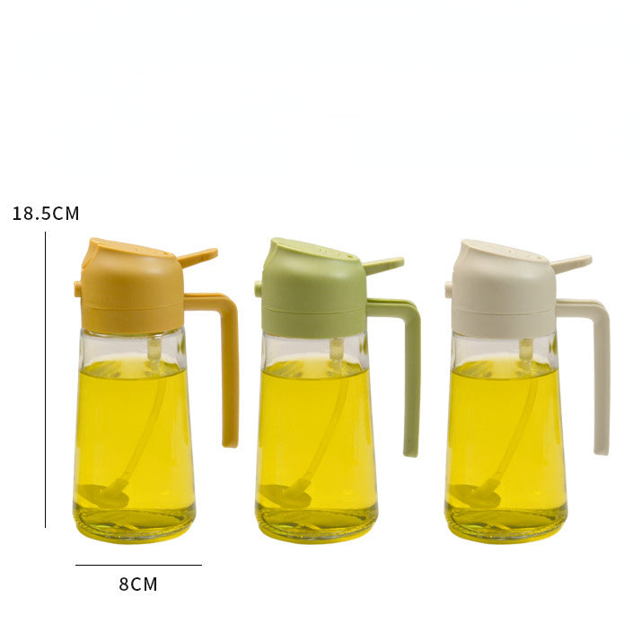FEATURES: Material: Glass+PP Color: White, Yellow, Green Capacity: 470ml Size: 8 x 18.5 cm ( 3.15 x 1.06 inches) Weight: 450 g ( 15.87 ounces) PACKAGING INCLUDED: 1 × Oil Sprayer