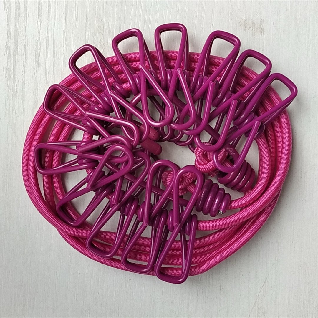 This portable travel clothesline conveniently dries your socks, undergarments, tops,swimsuit, pants, bra, towel, briefs, scarf and other clothes. Great for travel, camping, outdoor and indoor use.
