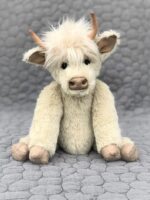 I am so proud to introduce “Hamish” a beautiful White Highland Cow. This cow is created in beautifully cloth velvet, and is completely hand made taking over 45 hours to complete.