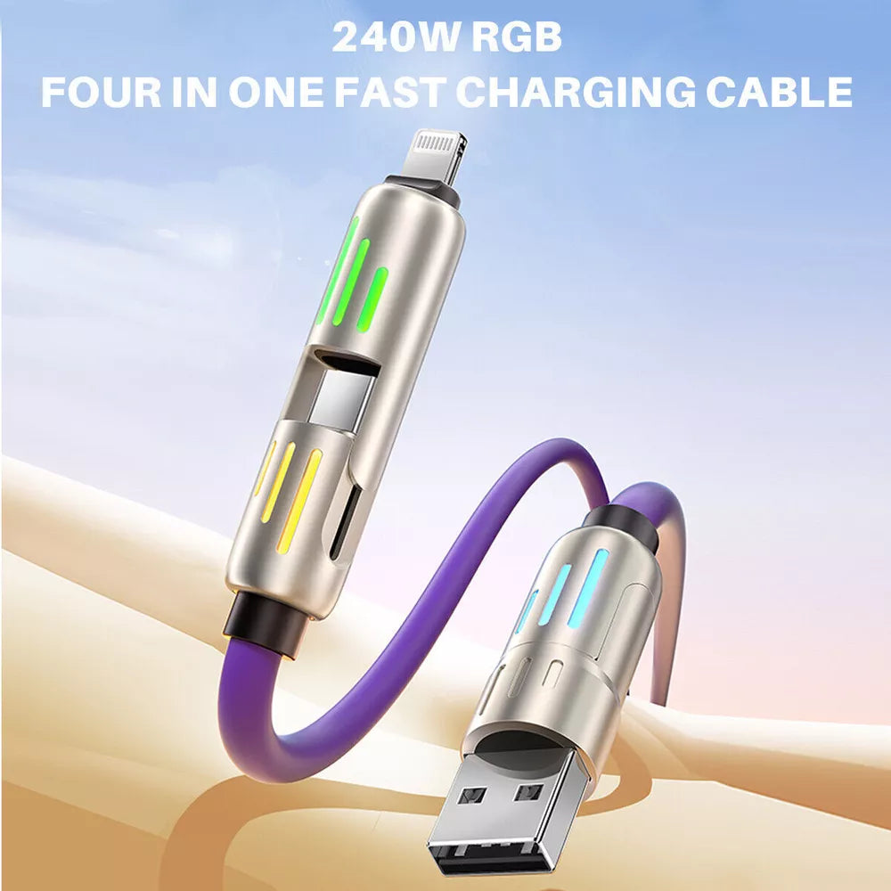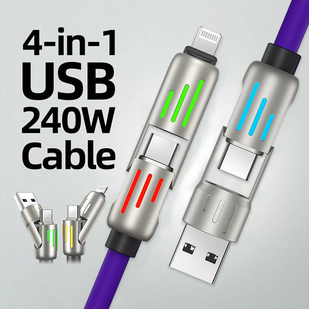 Worried about slow charging or flimsy cables that don’t last? The MFish 4-in-1 USB-C Cable 240W is your reliable solution for fast, efficient, and durable charging. Designed to power up your devices quickly and withstand everyday use, this cable is perfect for users who value quality and convenience. Whether you’re at home, in the office, or on the go, this cable ensures you stay connected without the frustration of constant replacements.