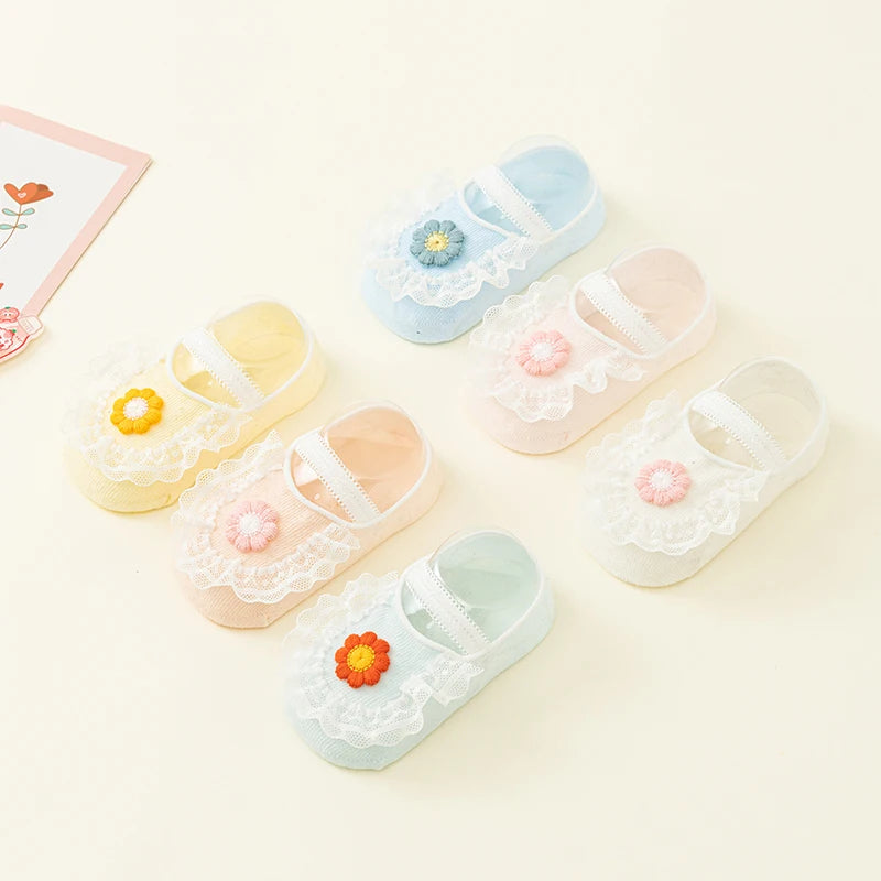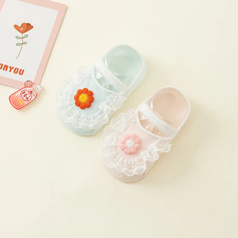 Delight in the charming elegance of our 2 Pairs Lace Flower Newborn Baby Socks. Designed with the utmost care and attention to detail, these socks are perfect for adding a touch of sophistication to your little one’s wardrobe.