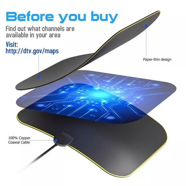 Say goodbye to expensive TV subscriptions and hello to unlimited, free HD entertainment with this indoor HDTV antenna. Designed with advanced signal-boosting technology, this antenna delivers crisp 4K and 1080p channels without monthly fees or hidden charges. Concerned about setup or performance? Rest assured, this antenna offers a seamless installation process and a powerful reception range, making it ideal for homes in urban and remote areas alike.