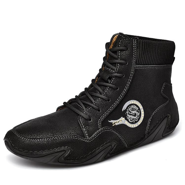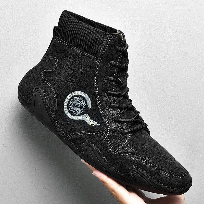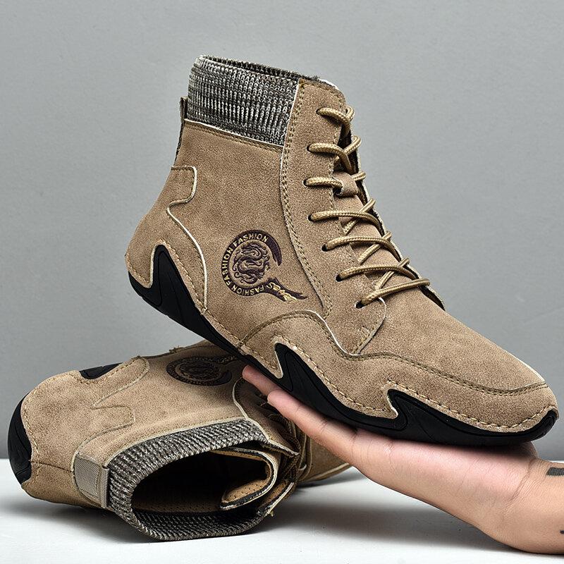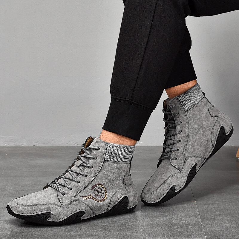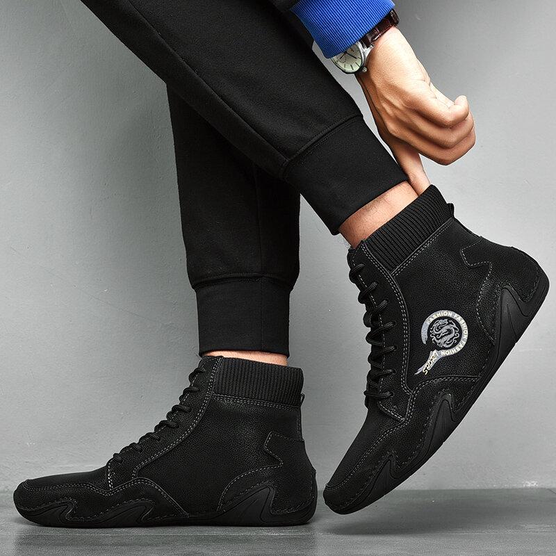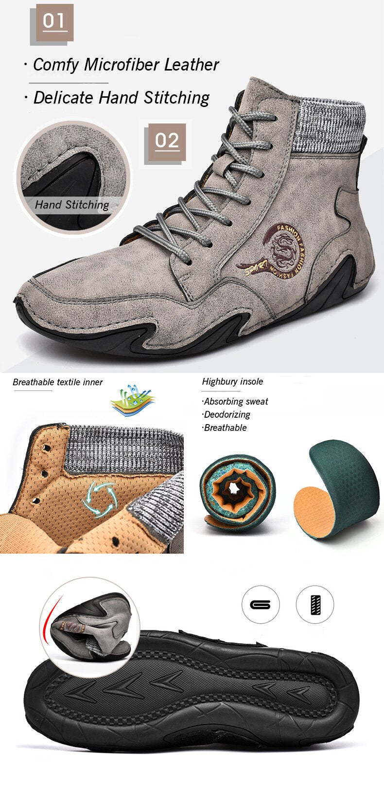Men's Microfiber Leather Hand Stitching Comfy Soft Sock Boots - onlinemegasale.com