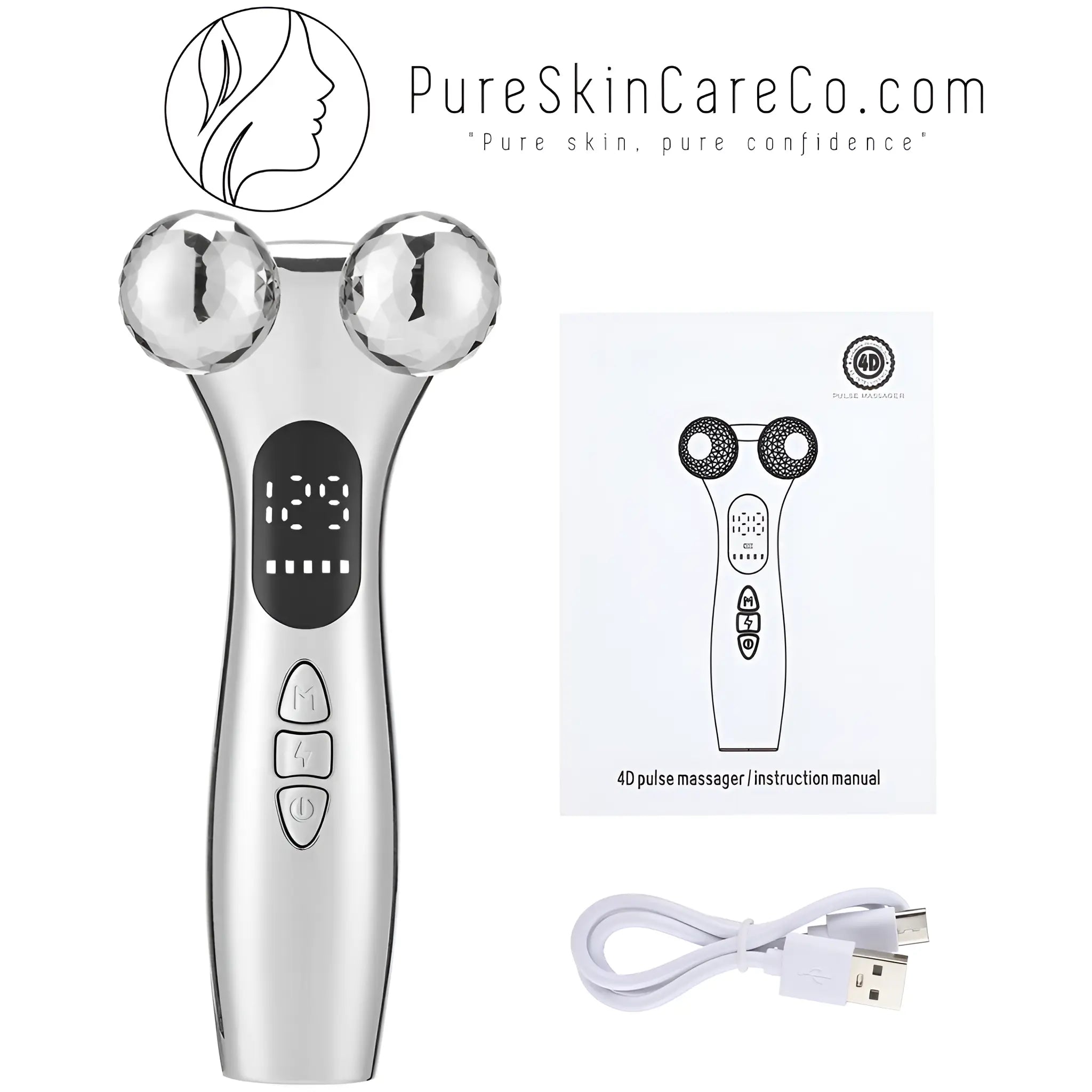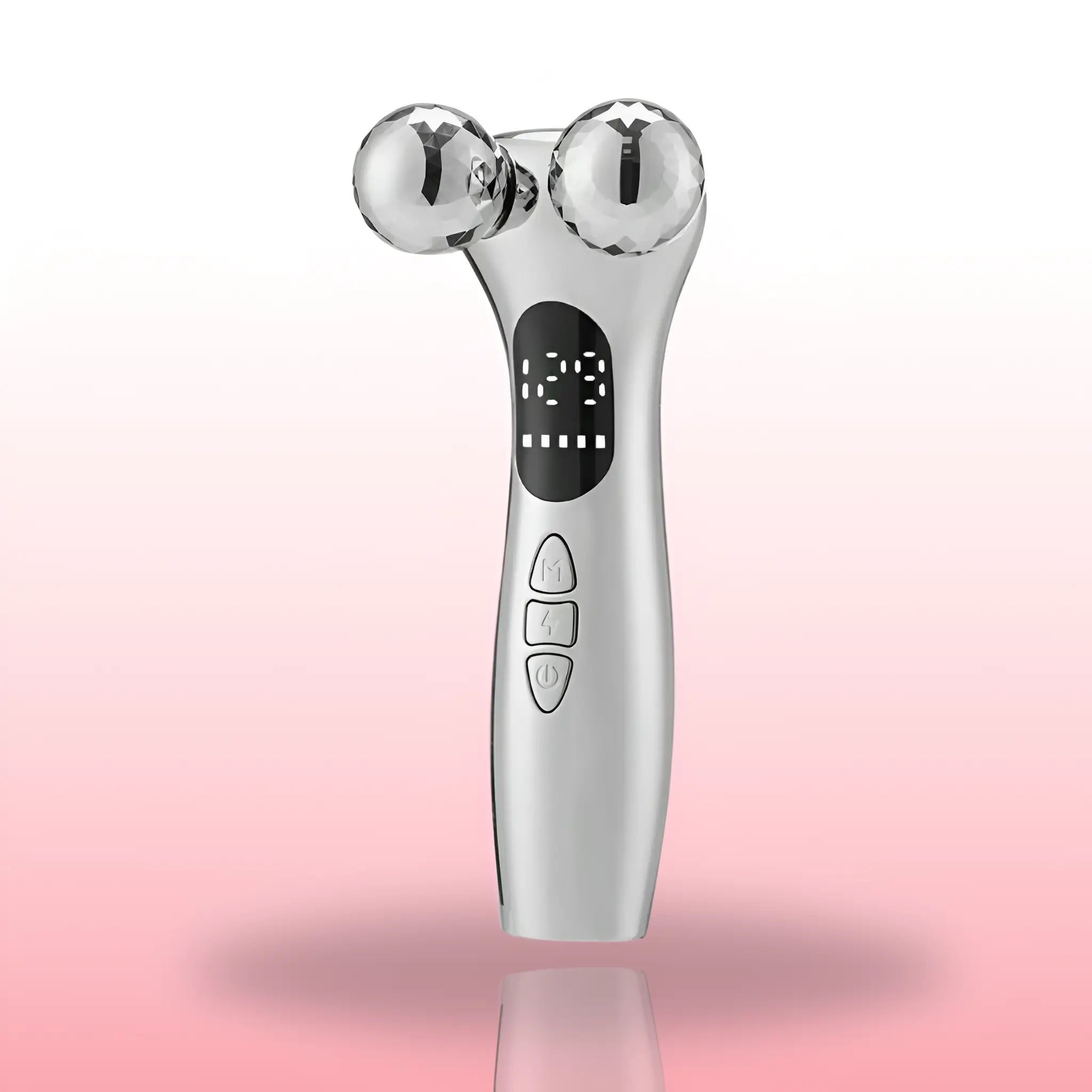 The 4D Roller Face Massager utilizes advanced EMS vibration technology and a 4D roller for facial sculpting.