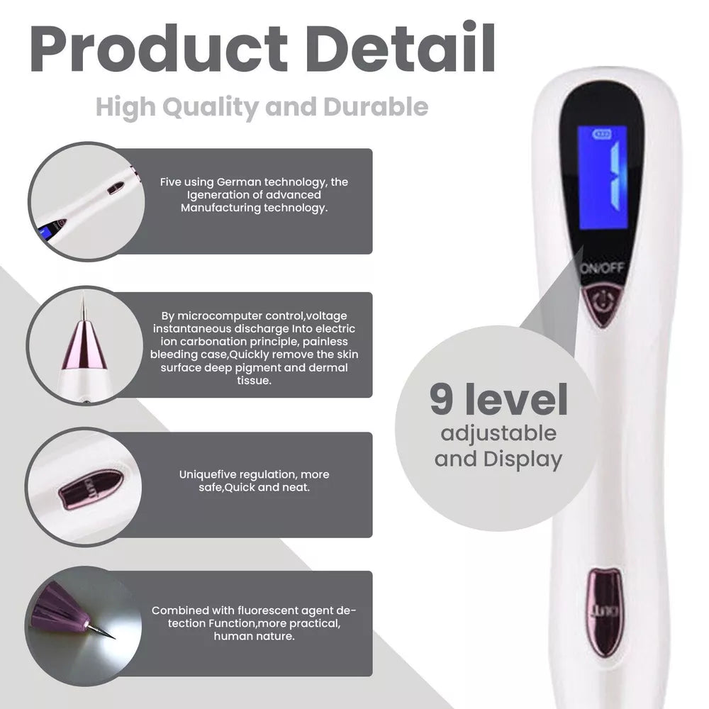 The Plasma Pen is packed with features to deliver targeted treatment with ease and efficiency. The device utilizes plasma ionization to create a controlled electrical discharge, gently treating your skin while triggering its natural healing process. Nine adjustable power levels allow for customization to address different skin concerns, from blemishes to fine lines. Its rechargeable battery, lightweight design, and intuitive LCD display make it convenient and easy to use anywhere. Safety measures ensure treatments remain effective yet gentle, minimizing risks and maximizing results.