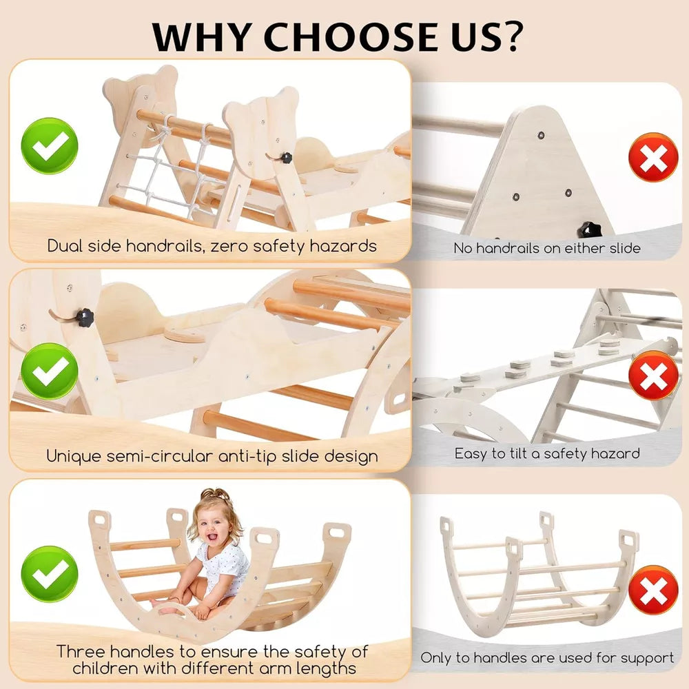 7-in-1 Natural Pikler Triangle Set: A Perfect Montessori Climber for Your Toddler’s Growth and Fun