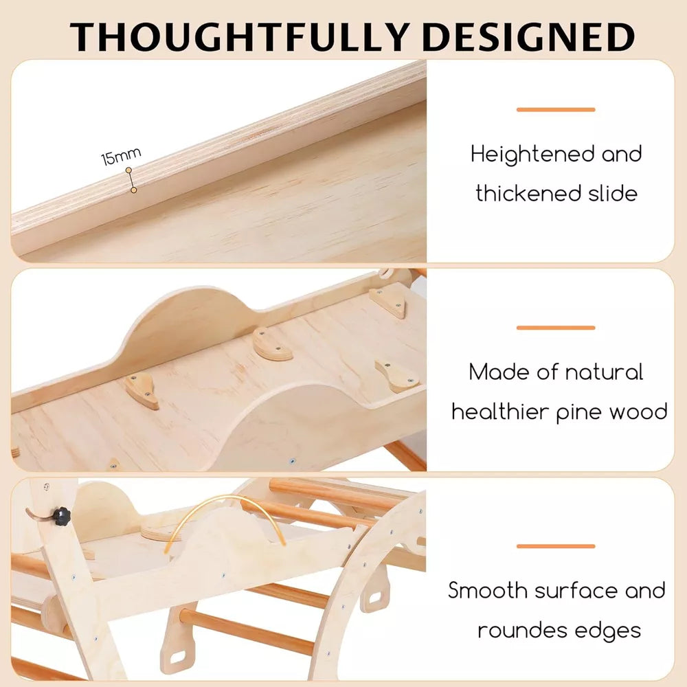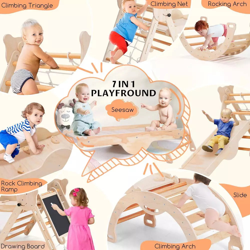 - 1 x 7-in-1 Natural Pikler Triangle Set