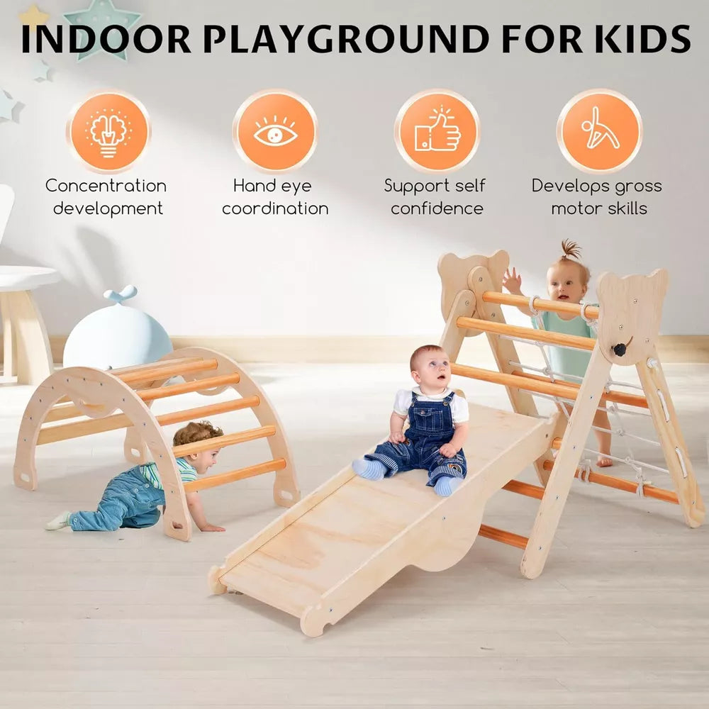 Are you looking for a safe, durable, and engaging play solution for your child? The 7-in-1 Natural Pikler Triangle Set is designed to keep your little one entertained while supporting their physical and cognitive development. Crafted with care, this multifunctional climbing set is perfect for parents seeking a high-quality toy that promotes independence, motor skills, and creativity. Whether your toddler is just starting to explore or already climbing, this versatile playset offers a safe and enriching experience.