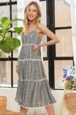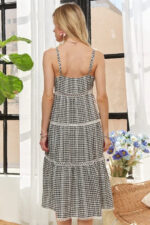 A washed dress with gingham detail combines a casual, lived-in look with a classic and summery gingham pattern. The washed fabric gives the dress a relaxed and slightly faded appearance, perfect for a laid-back vibe. The gingham detailing adds a touch of charm and timeless style to the overall design. This dress is great for sunny days and can be dressed up with a denim jacket and sandals or dressed down with sneakers for a cute and effortless outfit.