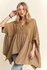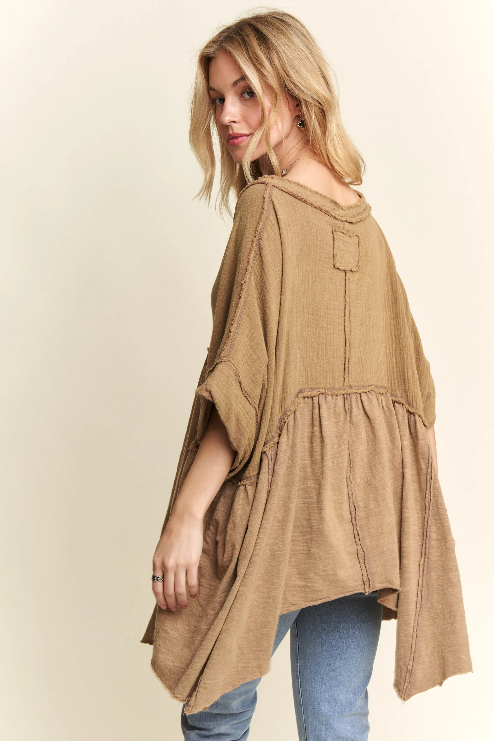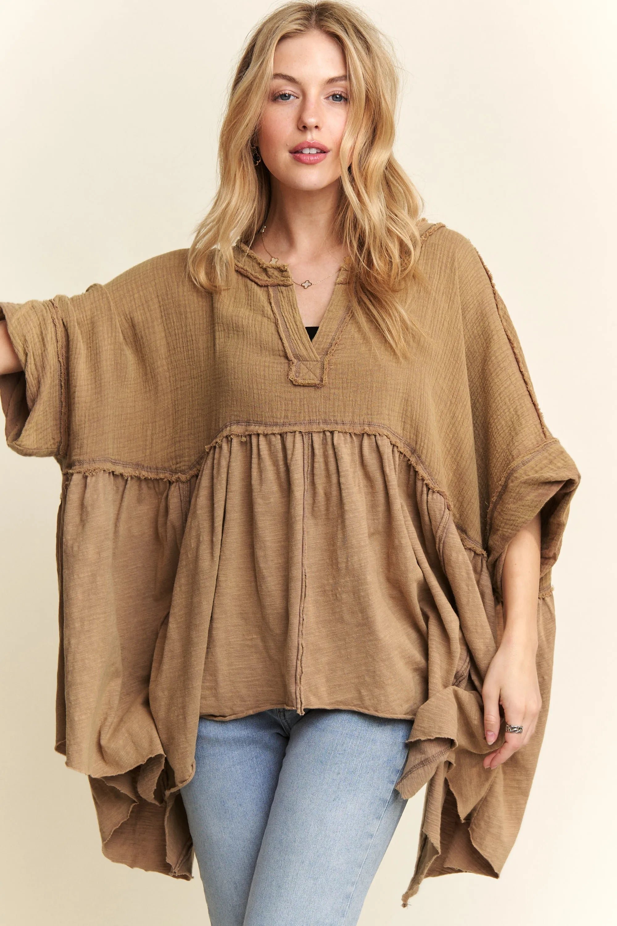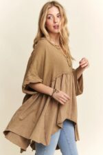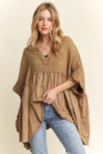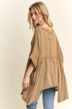 The oversized mineral washed flare top is a bohemian-inspired and relaxed addition to your closet. The mineral wash gives the top a vintage and edgy look, perfect for a casual and laid-back style. The oversized fit provides comfort and a cool, effortless vibe. The flare design adds a touch of whimsy and movement to the top, making it a fun and trendy choice. Elevate your look with the oversized mineral washed flare top for a chic and stylish ensemble.
