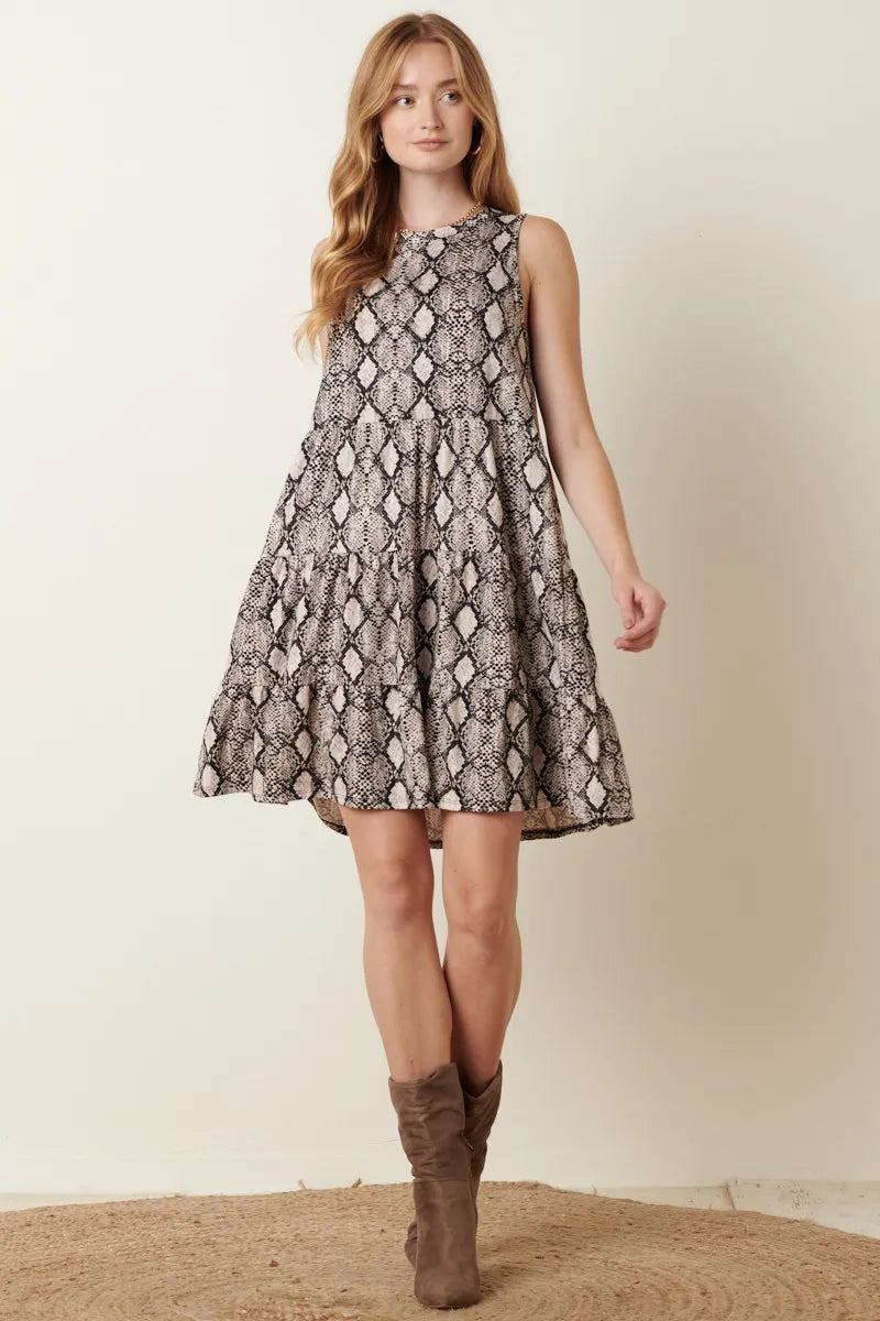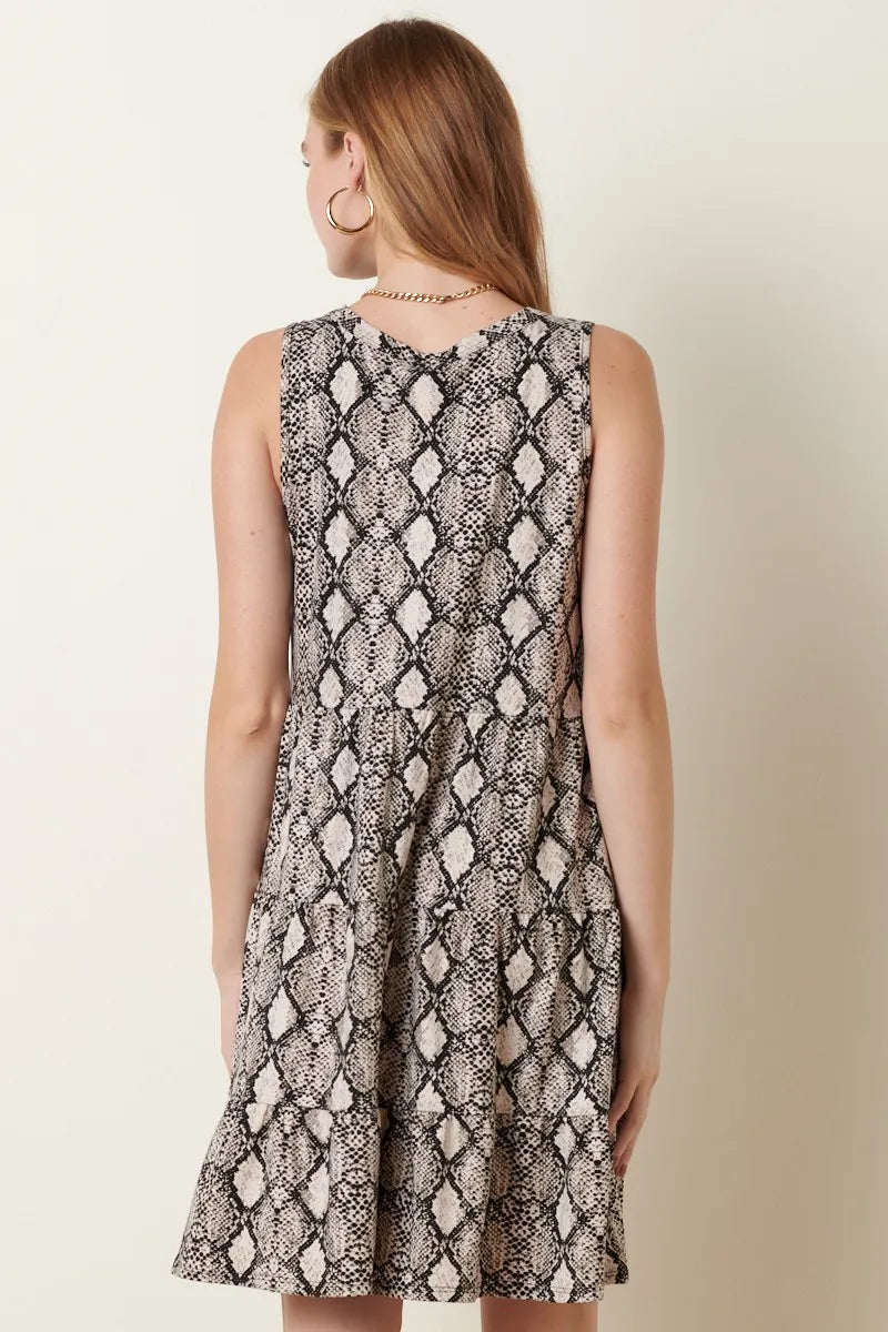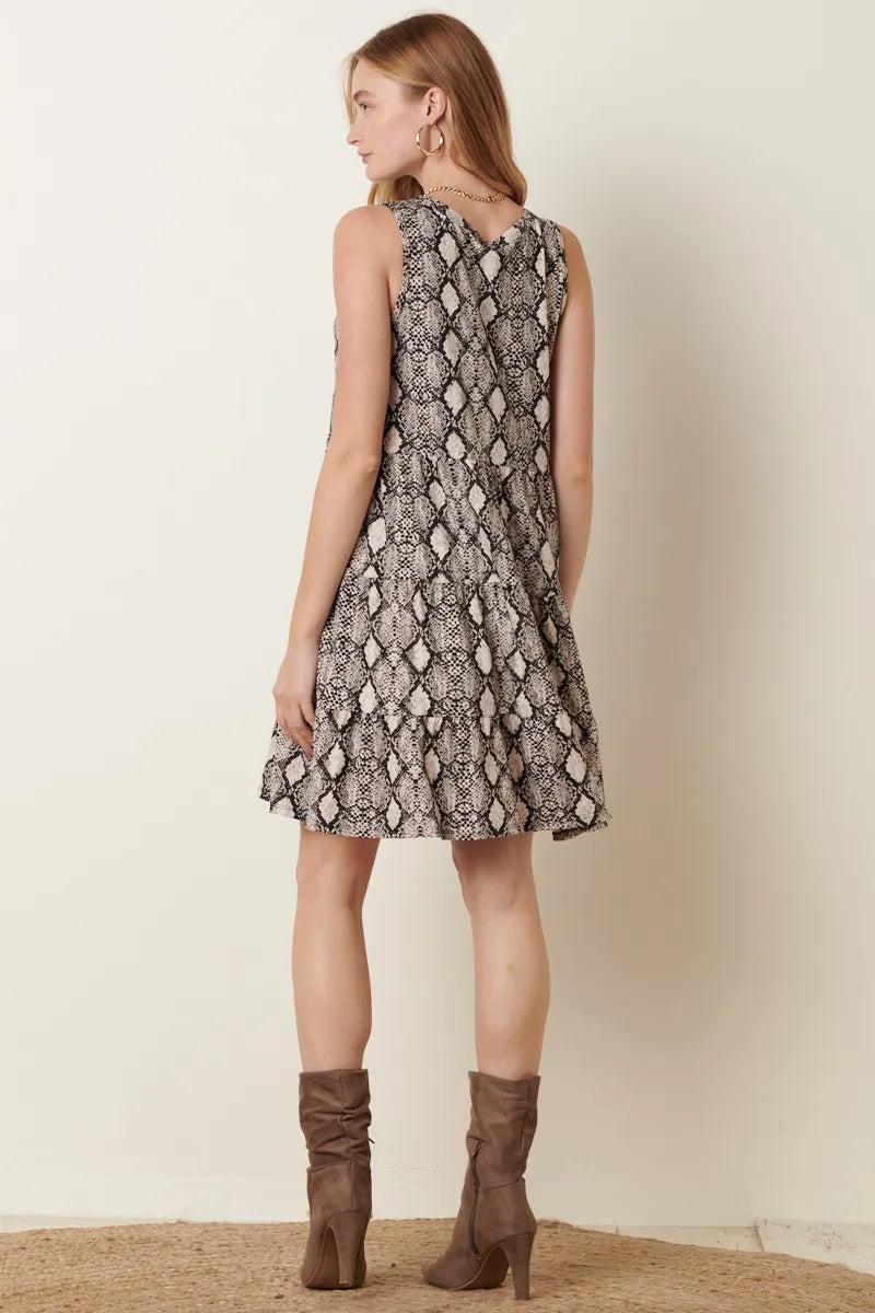 Snake Print Ruffle Detail Tank Dress