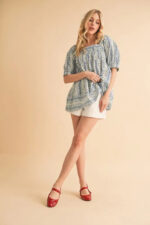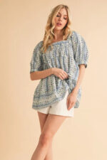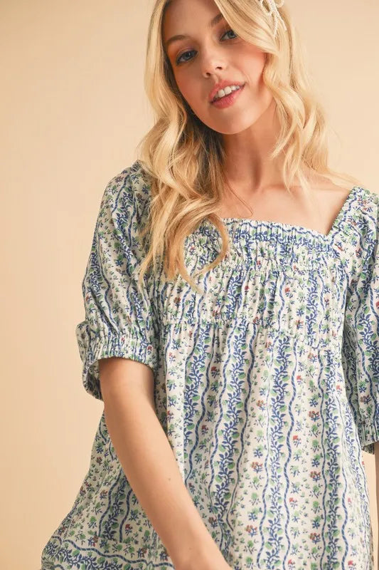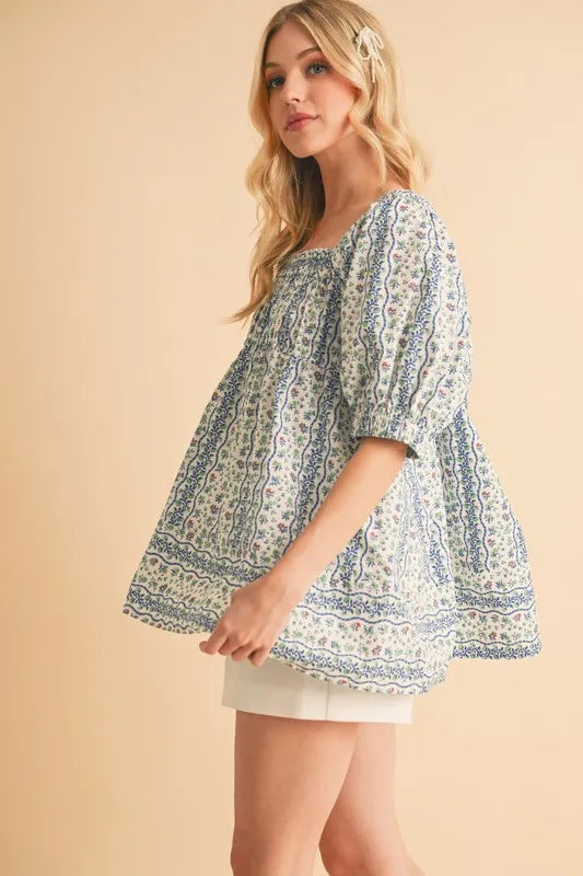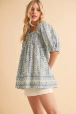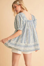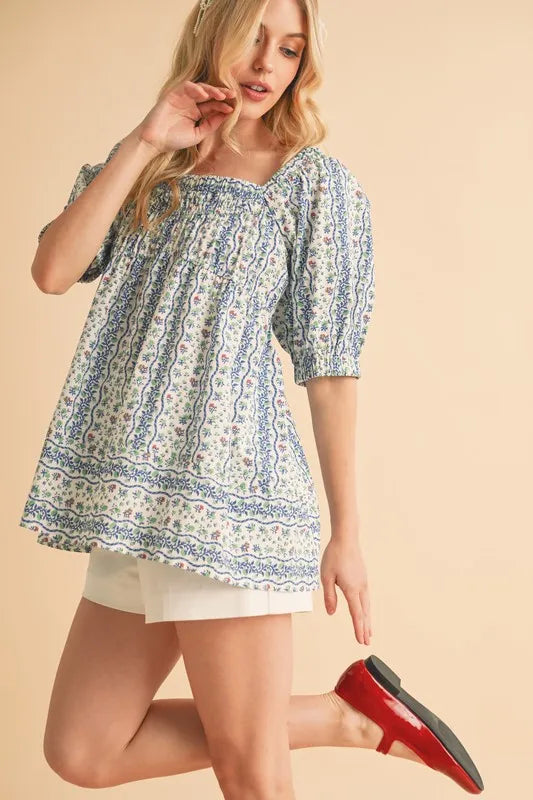 The floral short sleeve babydoll top is a charming and feminine addition to your wardrobe. The floral print adds a touch of romance and whimsy to the top. The babydoll silhouette creates a flirty and flattering look that is perfect for various occasions. The short sleeves are ideal for staying cool in warmer weather. Pair this top with jeans or shorts for a relaxed and effortless outfit, or dress it up with a skirt and heels for a more polished ensemble.