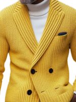 Crafted from high-quality knitted fabric, the Albus™ cardigan offers a relaxed yet refined fit that provides comfort without compromising on style. The lapel collar and double-breasted design bring a sharp, tailored look, making it a great option for both formal and casual occasions. Its soft texture and breathable material make it perfect for layering during those cooler months.