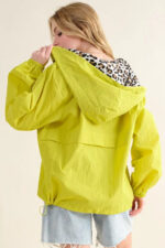 The leopard print hoodie zipper-up pocket windbreaker is a stylish and trendy outerwear piece. The leopard print adds a bold and fashionable touch to the windbreaker, while the hoodie and zipper-up design offer practicality and versatility. With added pockets for convenience, this windbreaker is both eye-catching and functional for a stylish look on-the-go.