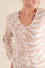 The leopard zebra combo casual sweater top is a bold and trendy choice for a fashion-forward and edgy look. The combination of leopard and zebra prints creates a unique and eye-catching design that adds a fierce and wild touch to the sweater top. This bold pattern is perfect for making a statement and standing out in style. The casual sweater style provides comfort and warmth, making it ideal for everyday wear. Pair this top with jeans or leggings for a standout and on-trend outfit that is sure to turn heads.