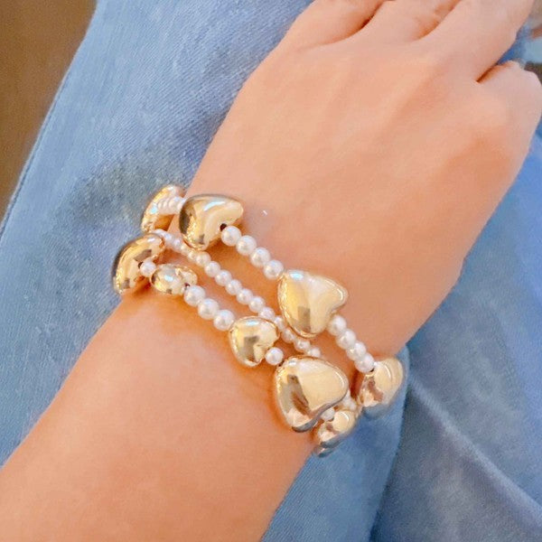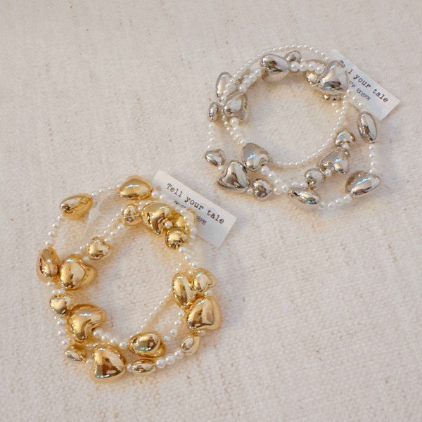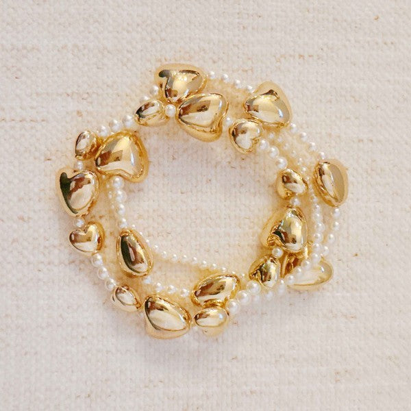 Golden Hearts Bracelets: 💛 Embrace a warm, loving vibe with these puffy, shining golden hearts, ideal for stacking with other pieces.