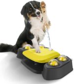 The dog water fountain Includes two nozzles, you can switch the nozzles for two different water models as you like. When the dog’s paw presses on the large pedal, the Dog sprinkler toy comes out with a stream of fresh water for the dog to drink, which encourages self-training and drinking.