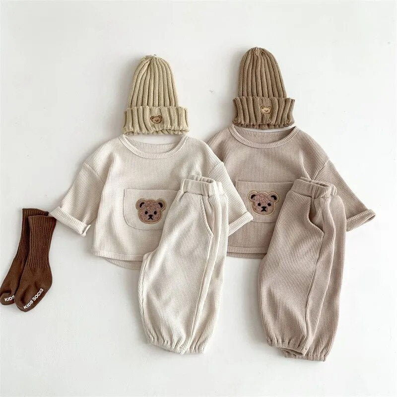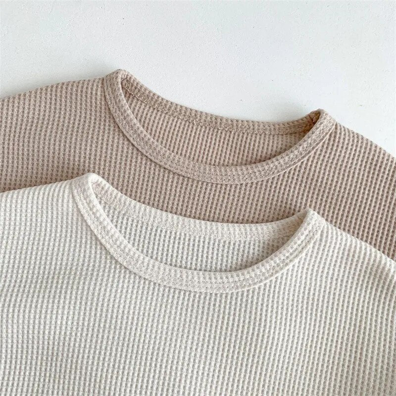 High-Quality Material: Made from soft and breathable waffle fabric, this clothing set ensures your child’s comfort throughout the day.
