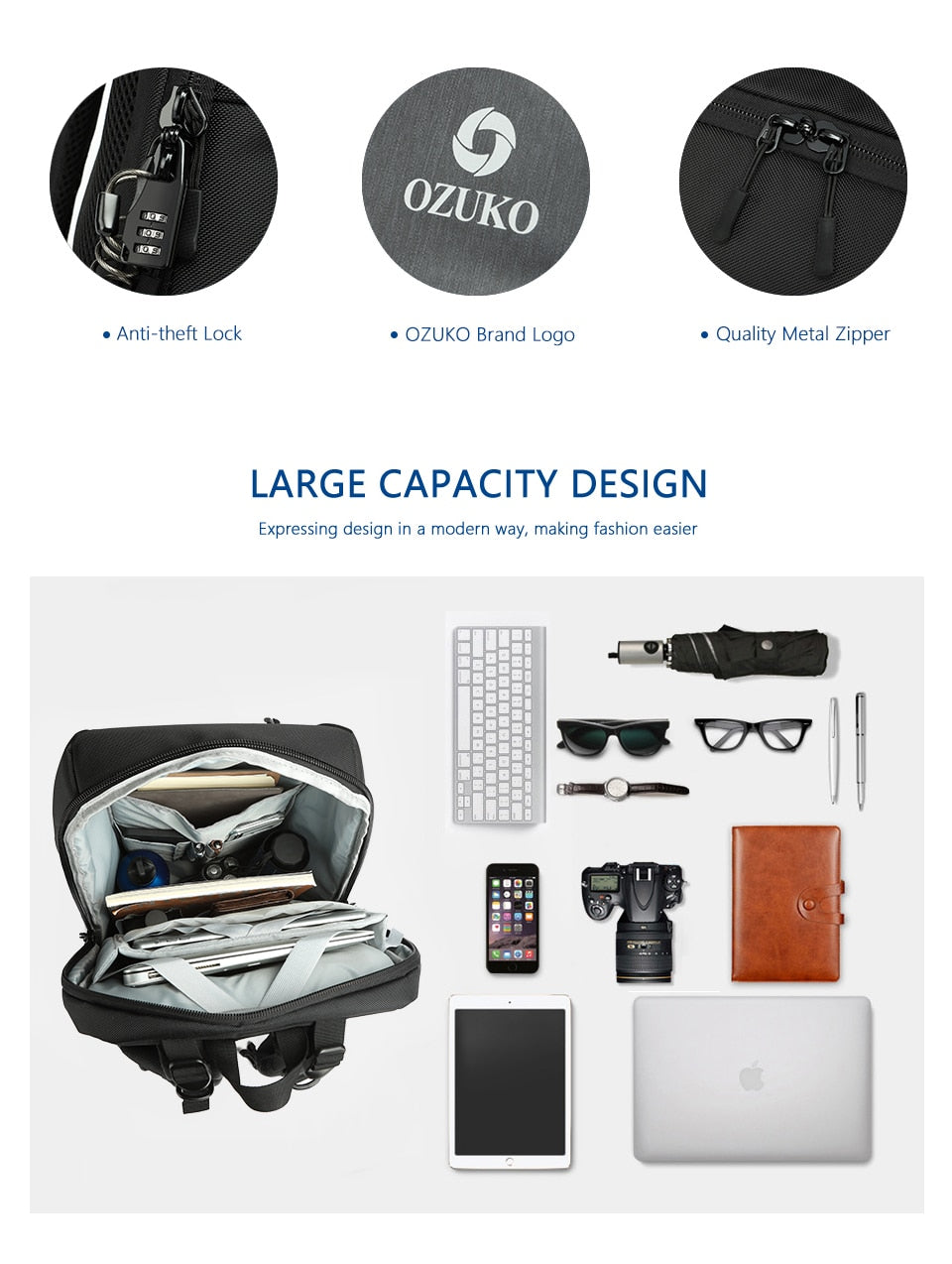 Features: Large Capacity, Water Repellent, Anti-theft, USB Backpack