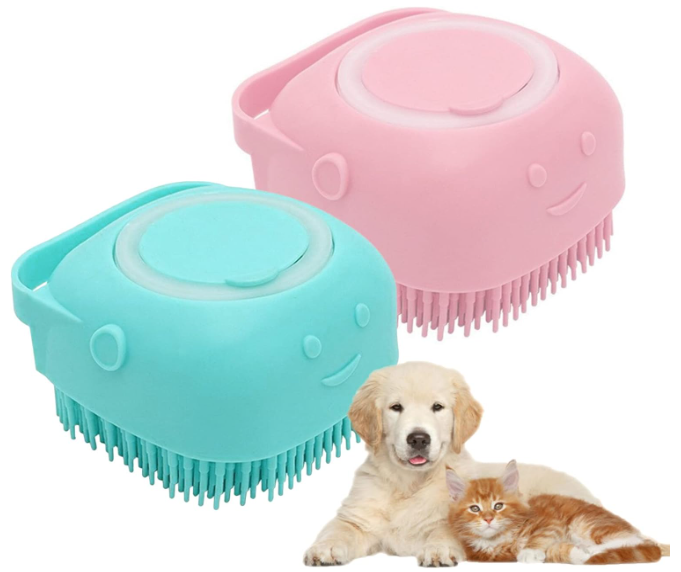 - Product Content: Our pet bath massage brush comes in a set of 2, one pink and one blue, so you can easily differentiate them for use on different pets. With two brushes, you can groom multiple pets at the same time.