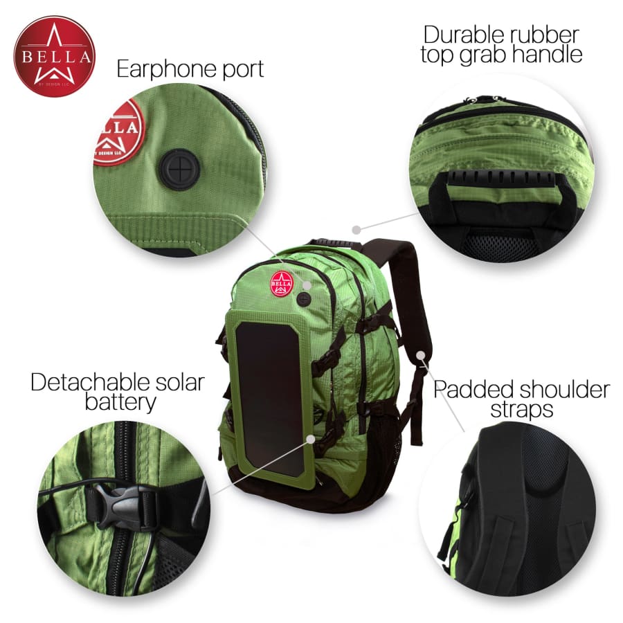 ⛳ STYLISH: Stylish in light green color laptop backpack solar electricity 40L (10.5 gallons) with detachable water resistant sun cells with 6 Watts of strength capacity and excessive performance and a ten thousand mAh strength financial institution to store energy for consumption later of your smartphones drugs and greater. Frustrating from cellular phones dying no more so long as you carry this powerful sun and fashionable solar backpack from Bellabydesignllc. This removable solar backpack comes with a 6.5W water resistant sun powered solar panel protected with a 10000mAh for your convenient and three compartments to your laptop and many other things strength via solar.