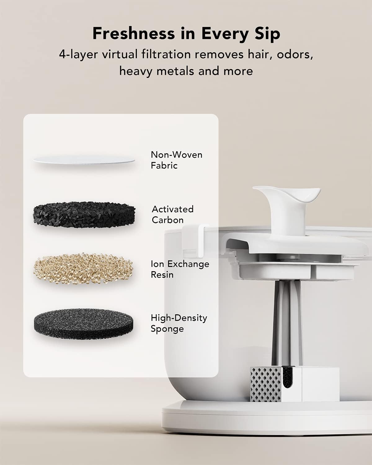 The advanced water flow structure filters out noise, so the entire fountain clocks in at a barely audible 23dB—quieter than a whisper.