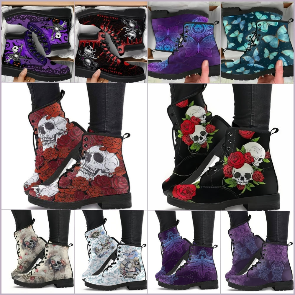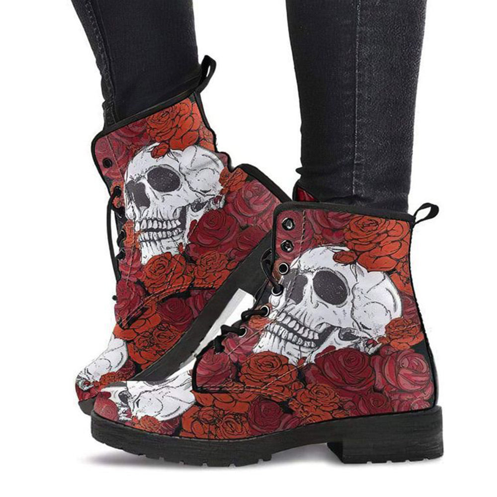 - 1 Pair x Printing Retro Style Skull Martin Boots