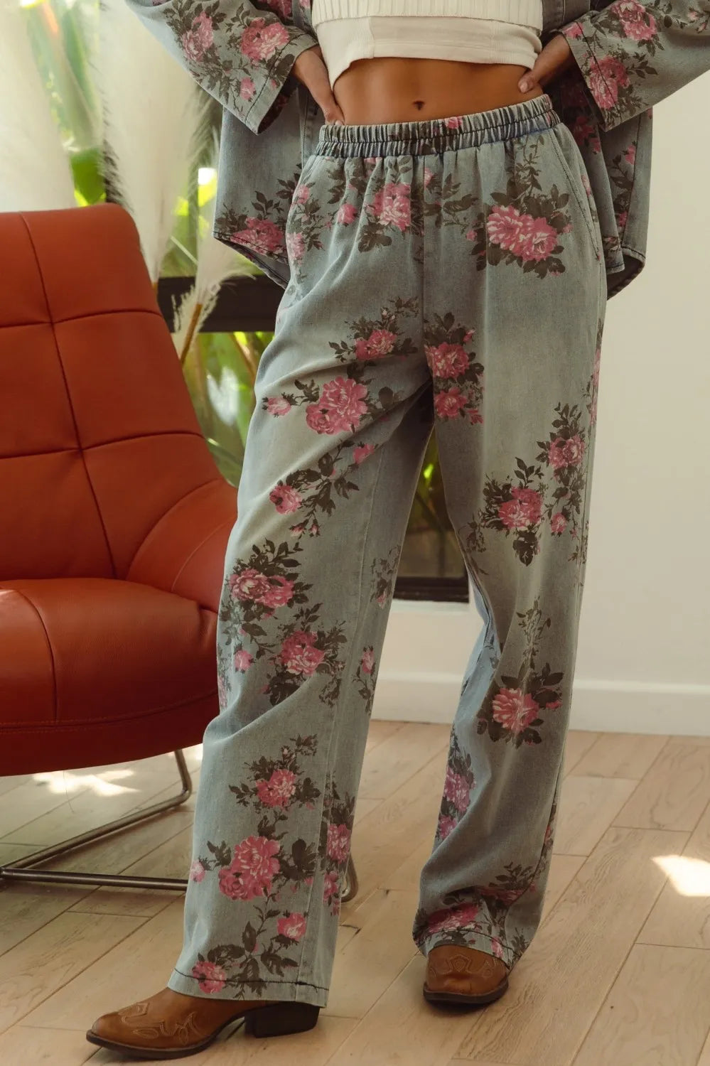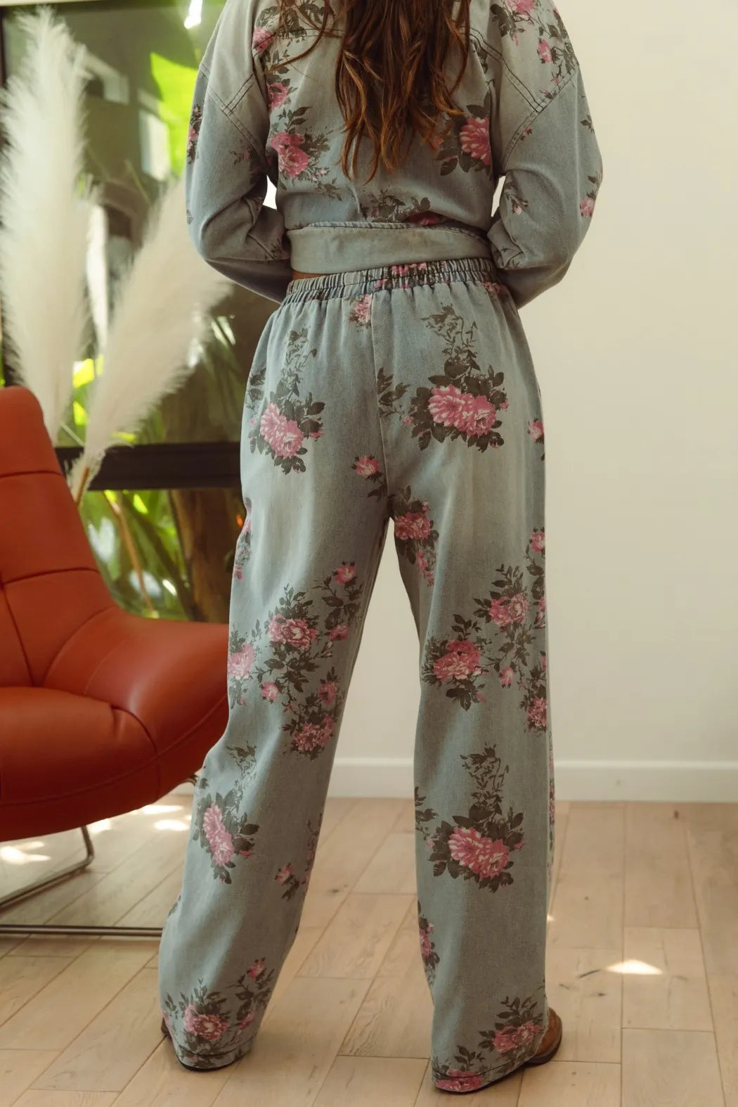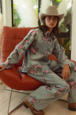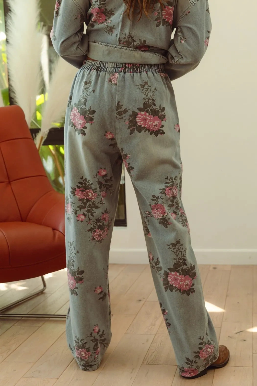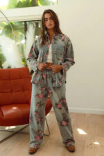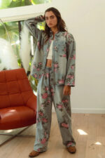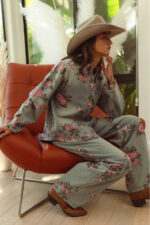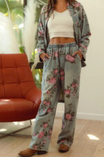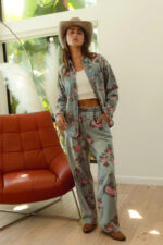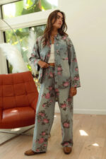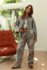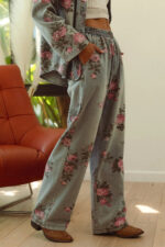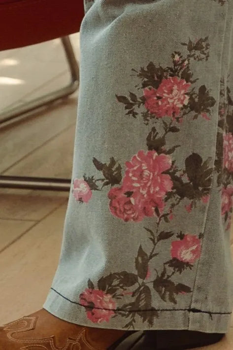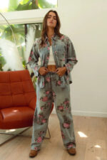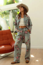 The flower printed denim pants are a vibrant and eye-catching addition to your wardrobe. With a colorful floral pattern scattered across the denim fabric, they exude a whimsical and playful charm. These pants offer a fun twist on classic denim and are perfect for making a statement with your outfit. Pair them with a solid top or a simple blouse to let the floral print take center stage, creating a fresh and stylish look that’s perfect for any casual occasion.