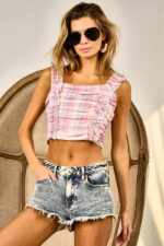 Be the first to review “Frilled Strap Vintage Plaid Tank Top”
