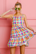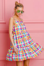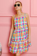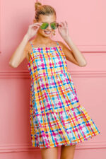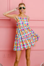 The multi-colors plaid sleeveless sundress is a cheerful and versatile piece that exudes a fun and playful vibe. Featuring a plaid pattern in various colors, this dress offers a fresh and vibrant look for sunny days. The sleeveless design is perfect for staying cool and comfortable in warm weather. You can style this dress with sandals or sneakers for a casual daytime outfit. Whether you’re heading to a picnic, brunch, or a day out in the sun, this sundress is a charming and easy-to-wear choice that adds a pop of color to your summer wardrobe.