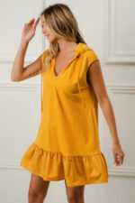 This Ruffled French Terry Hooded Dress combines feminine ruffles with a cozy French terry fabric and a practical hood for a stylish yet comfortable look. The ruffle detailing adds a touch of elegance to the casual hooded design, making it perfect for a chic athleisure outfit. Whether you’re running errands or just relaxing at home, this dress blends fashion and comfort effortlessly.