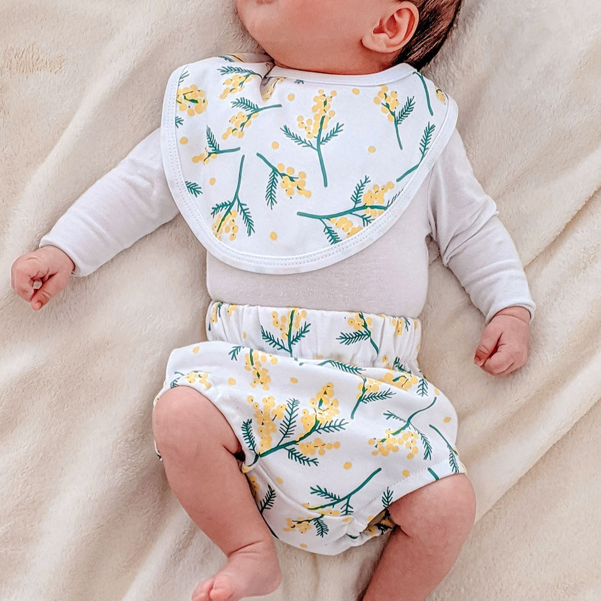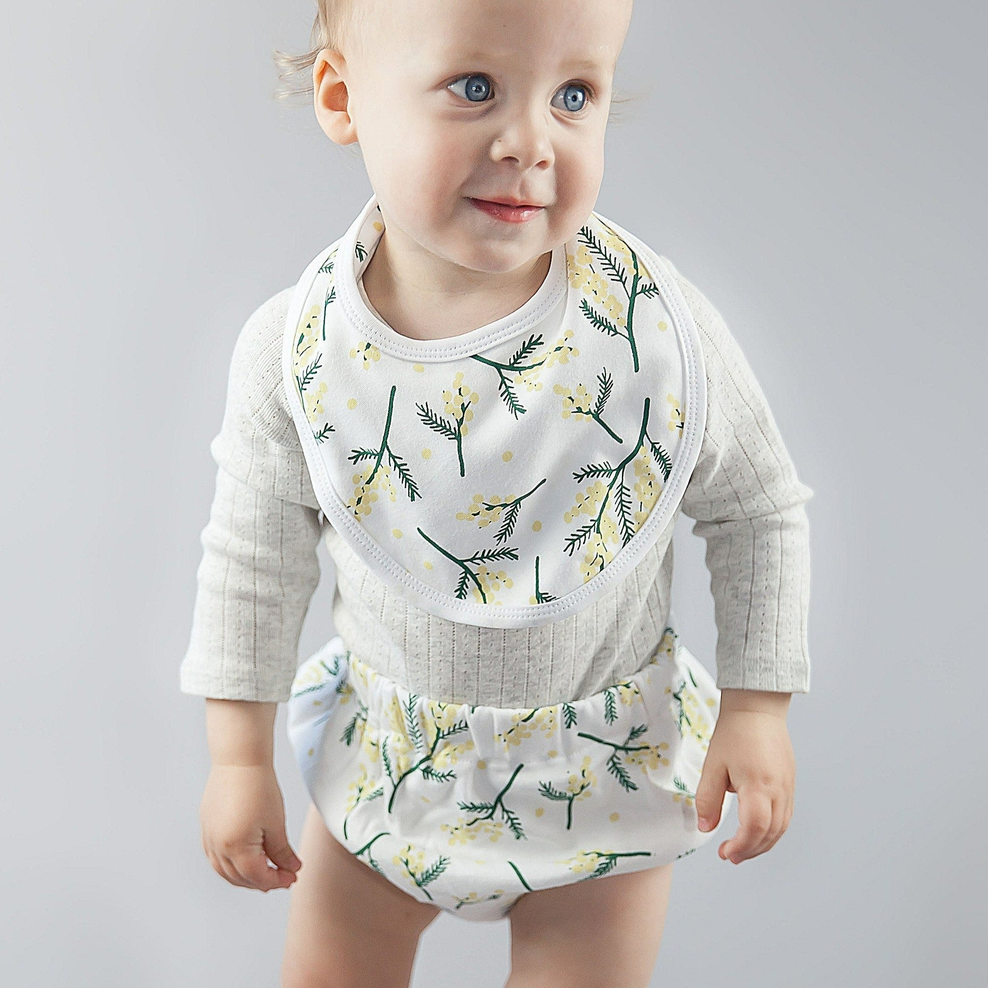 Who doesn’t love a good old classic Aussie pattern!? This unisex wattle print is one of a kind, uniquely hand drawn by Aussie artist Sara Duncan and not to mention super trendy too! These bloomers are designed with a higher waist and rounder bottom for complete nappy coverage. They also…