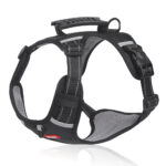 - Safety your features include Nylon webbing with reflective material for Good visibility at night and Sturdy handle for easy seat belt attachment while riding in your car.reflective Nylon webbing ensure good visibility for this high-end Dog Harness.