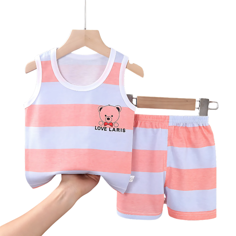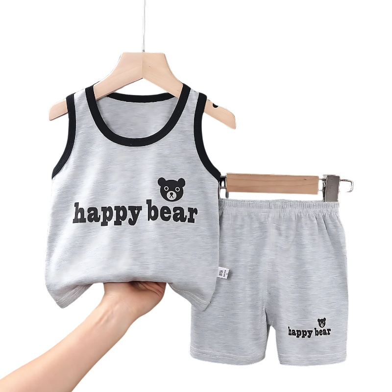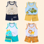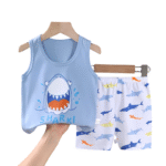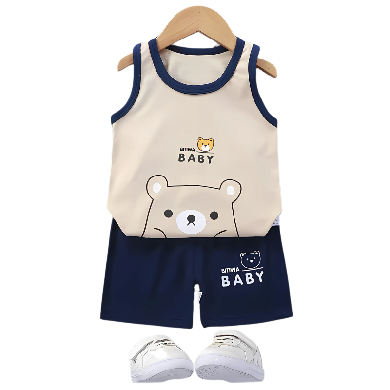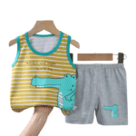 The Breezy Comfort Set is the perfect lightweight and breathable summer outfit designed to keep active little ones cool, comfy, and free to move, featuring a soft cotton sleeveless top and matching shorts with an elastic waistband for all-day comfort, plus an adorable cartoon pattern that adds a fun and playful touch.
