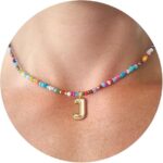 This beautiful necklace showcases your letter in gleaming gold, surrounded by hundreds of colorful beads that catch the light.