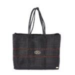 Handmade woven plastic tote with 24K Gold Plated Signature Medallion and Lola’s brand nameplate