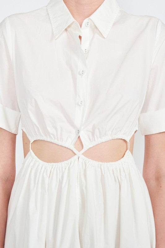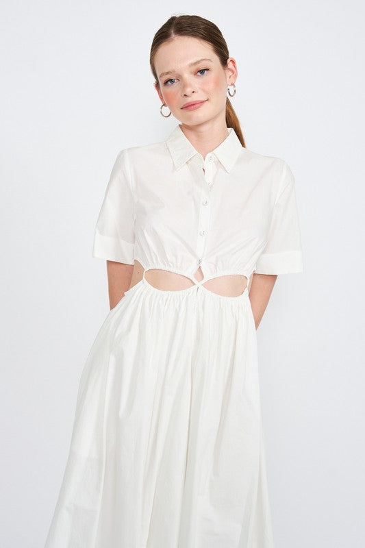 Chic Button-Up Midi Dress with Stylish Cut-Outs