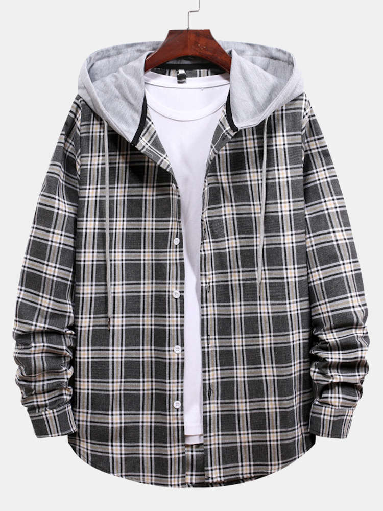 Be the first to review “Button Up Drawstring Hooded Plaid Shirts”