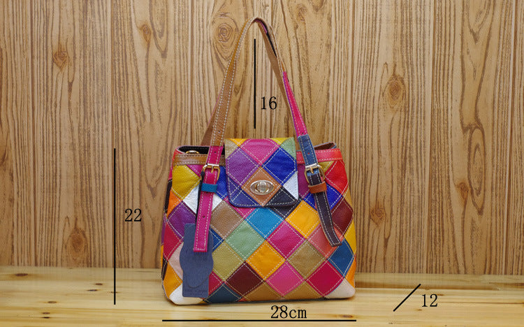 Casual Patchwork Geometric Handbag Multi-Color Random stitching Shape: Flap – Handbags Type: Shoulder BagsTypes of bags: Shoulder & Handbags – Main Material: Genuine LeatherGenuine Leather Type: Cow Leather – Closure Type: ZipperHardness: SOFT – Exterior: Silt PocketStyle: Casual – Lining Material: Organic CottonOccasion: Versatile – Pattern Type: PlaidNumber of Handles/Straps: Single – Interior: Cell Phone PocketInterior: Interior Zipper…