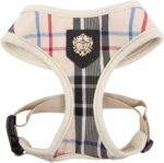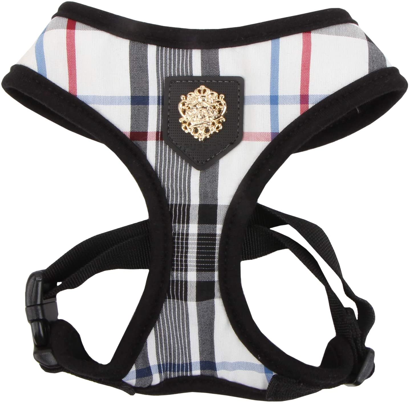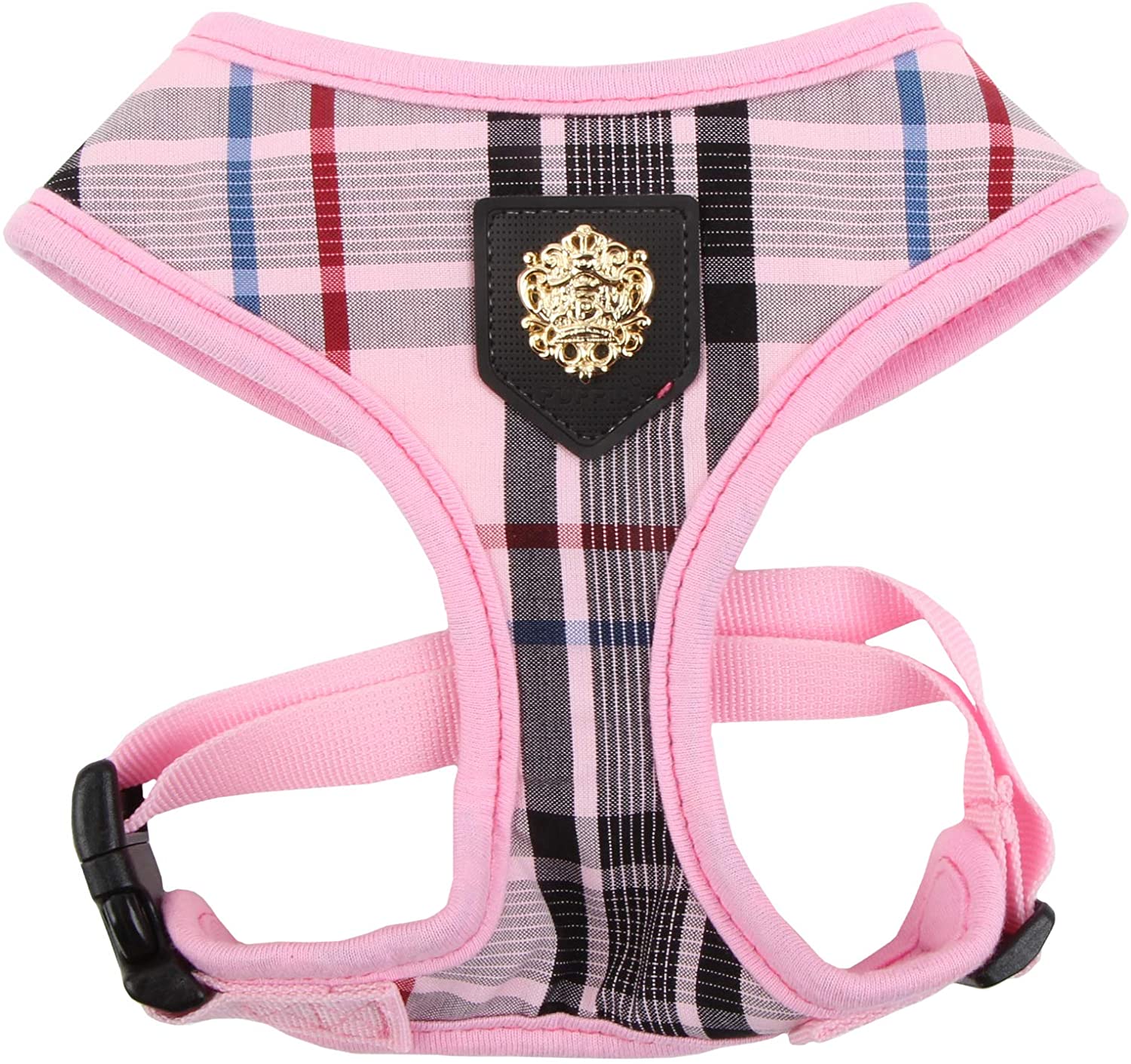 The Harness is a new pattern that joins the rest of the lineup in the A harness family. This traditional “over-the-head” design features a luxurious pattern with a hint of a preppy look. It has an adjustable chest belt and also has a matching lead in the same pattern. Available in Beige, Pink, and Black in sizes ranging from Extra-Small to Extra Large. Please note that because these products were created with small/medium dog breeds in mind, larger sizes (i.e. Large, Extra-Large, etc.) do not necessarily mean larger breeds. Please refer to the image of the size chart. Weight figures are for estimates only. Always use actual measurements. Please note that when measuring your dog, the measurement for the neck must be taken at the BASE OF THE NECK, and chest girth must be taken behind the front legs. Also, it is important to take into account the size of the dog’s head as well as neck girth and chest girth. Since some dogs have a much larger head than their neck, please be sure that the neck opening is large enough to slide over your dog’s head.