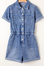 Be the first to review “Chest Pocket Front Buttoned Folded Edge Denim Short Sleeve Romper”