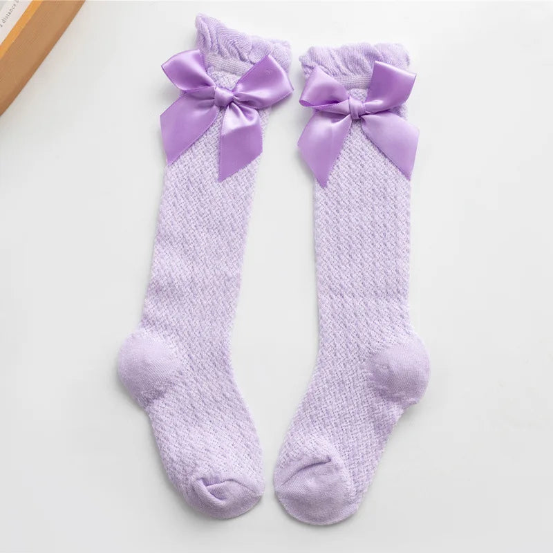 Add a touch of vintage charm to your baby’s outfit with these stunning Lace Knit Baby Socks! These delicate knee-high socks feature a beautiful openwork lace pattern, adding a sweet and airy look to any ensemble. The elegant design is complemented by a large satin bow on the side, giving them a classic and timeless appeal. Crafted from soft, breathable fabric, they are perfect for keeping little legs comfortable while looking stylish. Ideal for special occasions, photoshoots, or everyday wear, these socks are a must-have for any baby girl’s wardrobe. Pair them with dresses or skirts to create an adorable, picture-perfect look!