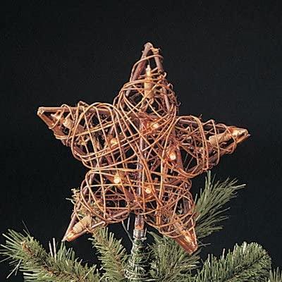 This natural star tree topper has a rough, rustic look that is accentuated by the warm, yellow lights that glow from within it. It gives a country flair to the classic Christmas star that will look seamlessly beautiful on a Christmas tree with other natural decorations like berries and pine cones.
