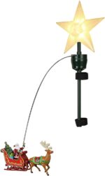 This unusual Animated Star and Sleigh Tree Topper includes a light-up star and Santa’s sleigh which is animated to fly around your tree. It will be hard to take your eyes off of old Saint Nick as he makes his rounds on this eye-catching topper. It’s easy to set-up, attach to your tree, and plug-in so you don’t have to worry about anything, except, perhaps, Santa knocking off an ornament or two.