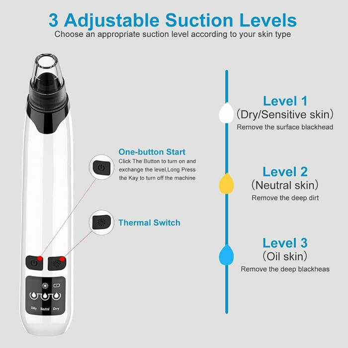 This innovative device effectively eliminates blackheads, whiteheads, pimples, and other imperfections, helping you achieve your best-looking skin.