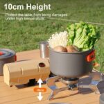 ✡Prevent Skidding: The camping stove’s aluminum alloy-toothed brackets ensure cookware won’t slip, while its stable 10cm stand protects surfaces from the flame’s heat.
